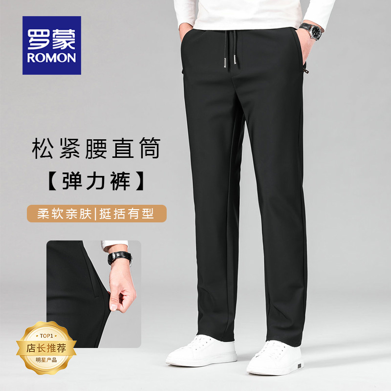 罗蒙松紧腰高弹商务休闲裤秋冬款
