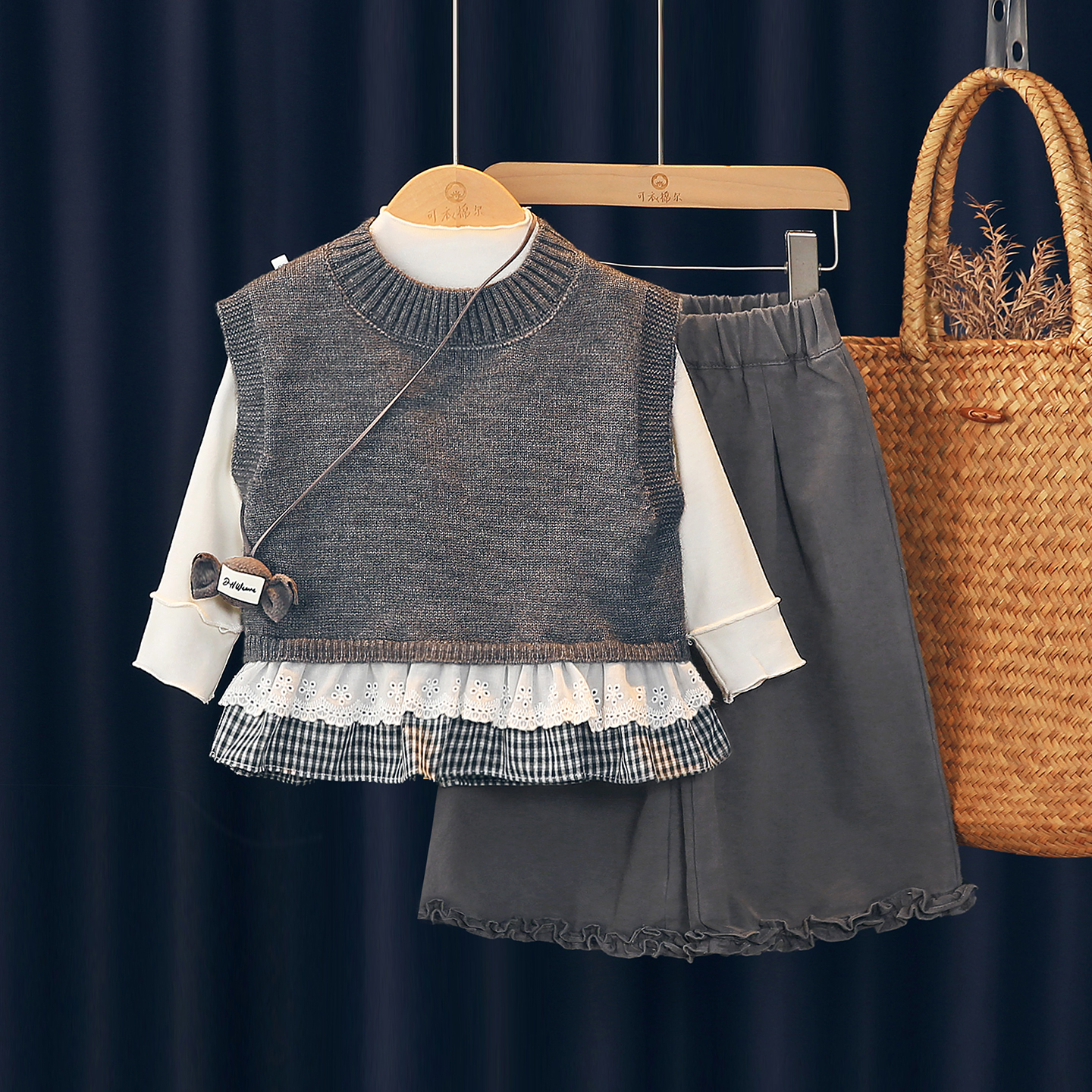 可衣棉尔日韩版纯棉针织马甲套装