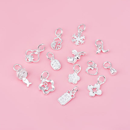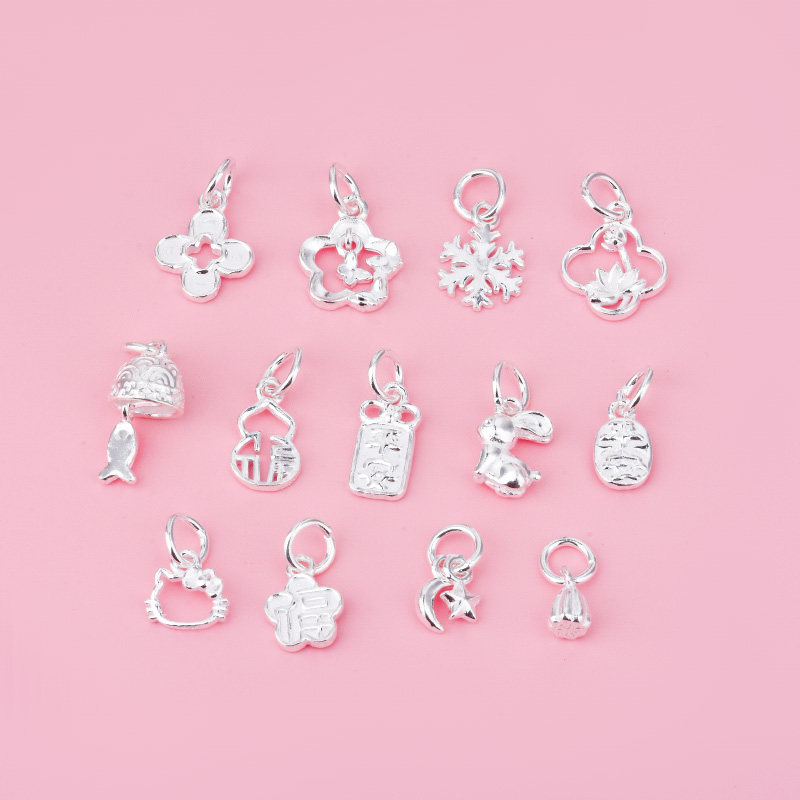 S999足银吊坠葫芦 平安喜乐KT猫挂件简约百搭编织首饰DIY配件材料