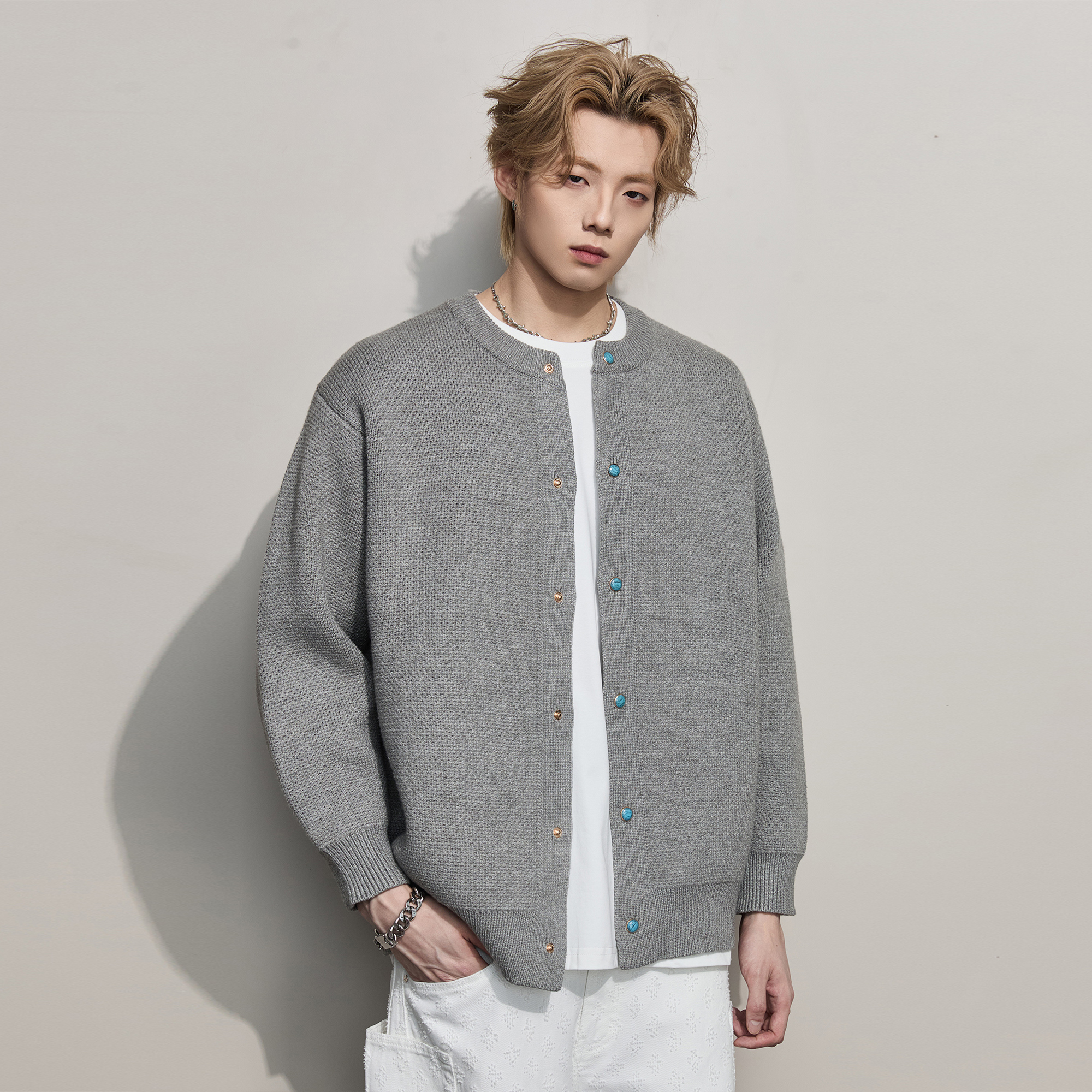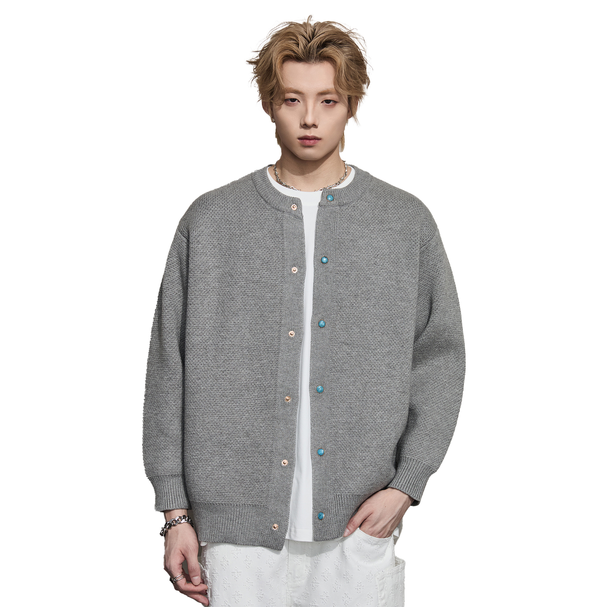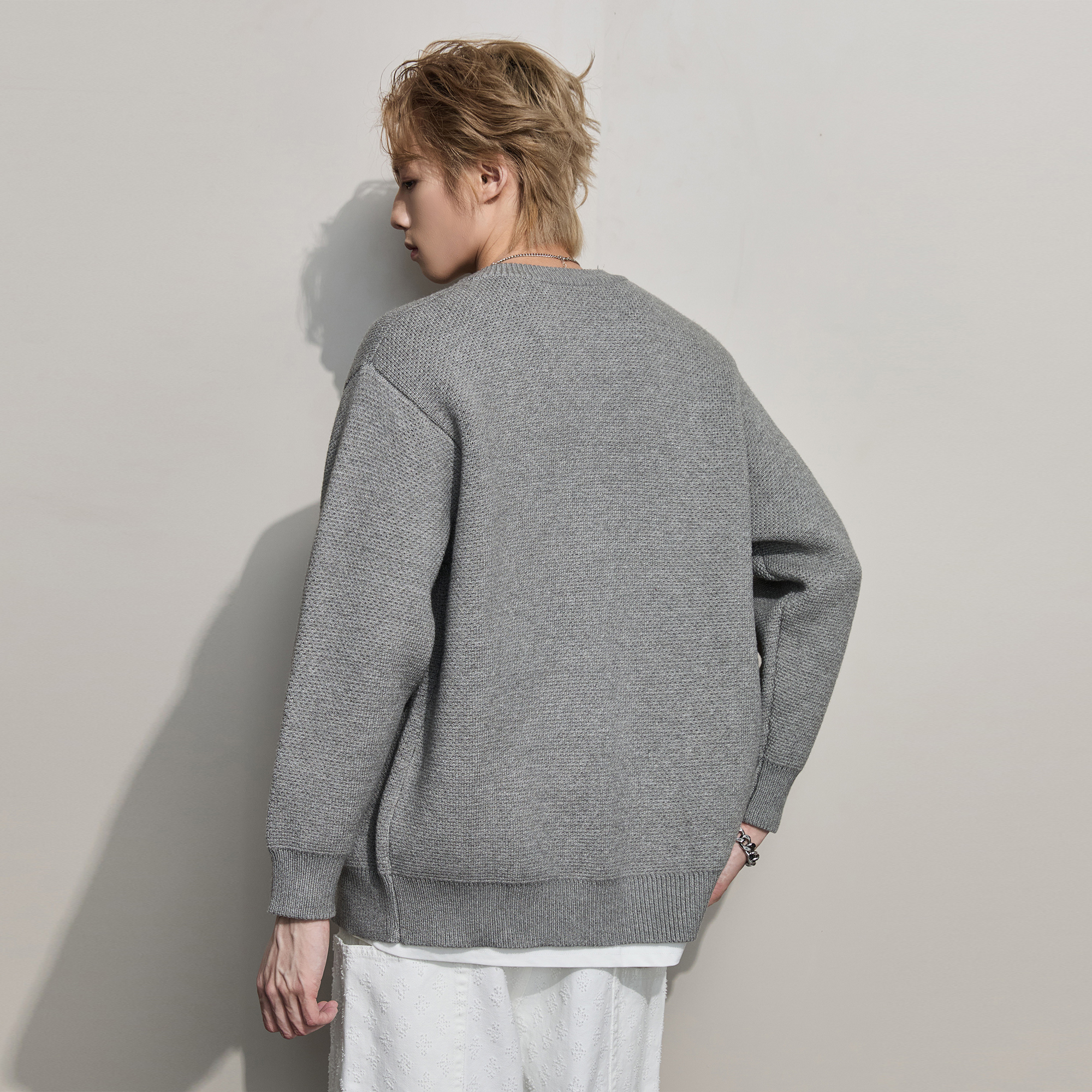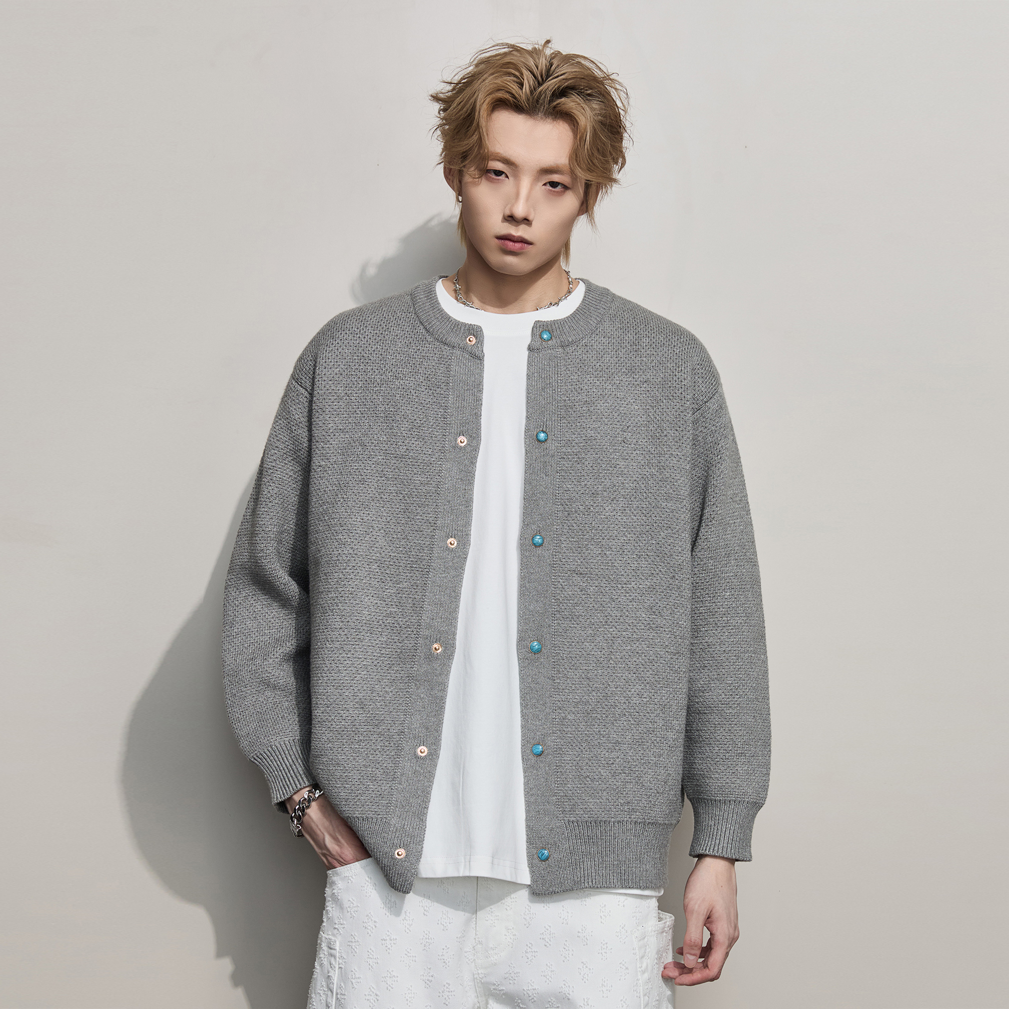 ALLIN 慵懒风灰色开衫毛衣男秋冬情侣休闲通勤纯色宽松针织衫外套