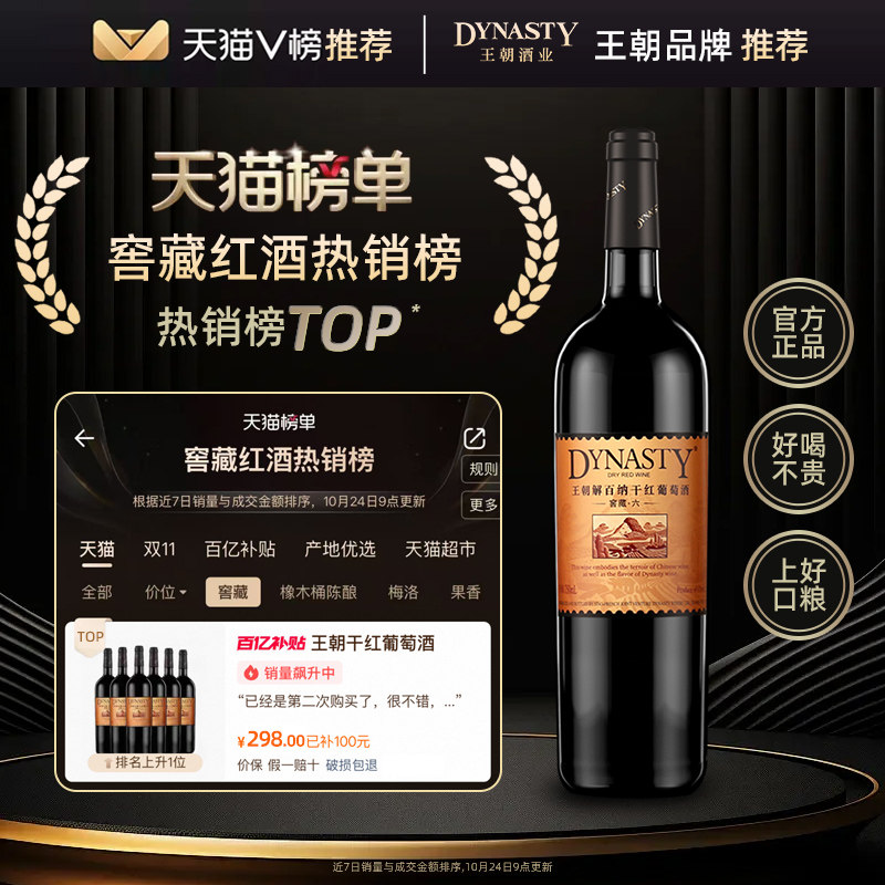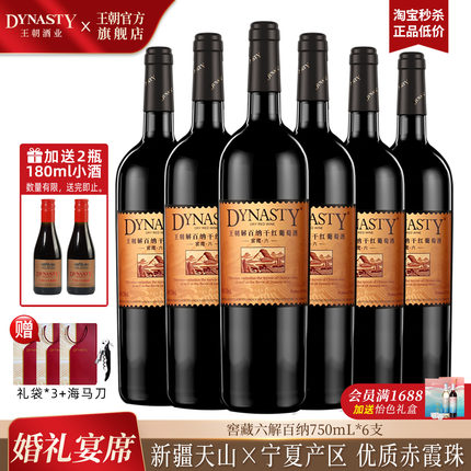 王朝干红葡萄酒官方旗舰店DYNASTY窖藏六解百纳750ml*6瓶国产正品