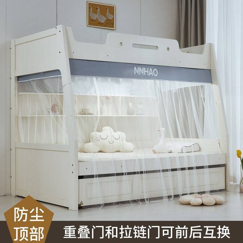 新款子母床蚊帐下铺双开门蚊帐书架梯形家用双层儿童床高低上下床