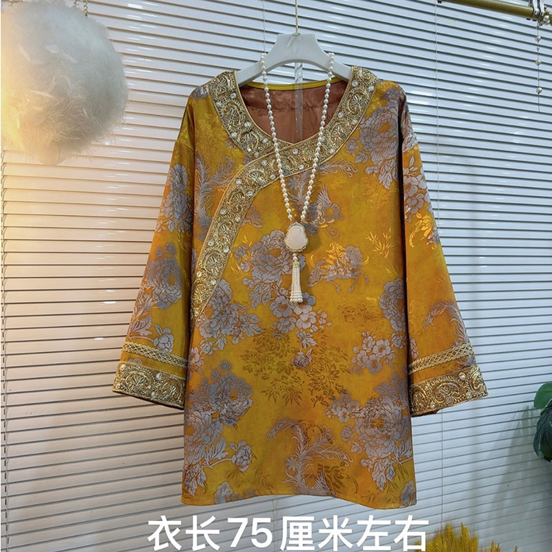新中式大码女装2025秋季新款国潮风轻奢重工提花盘扣显瘦长袖衬衫