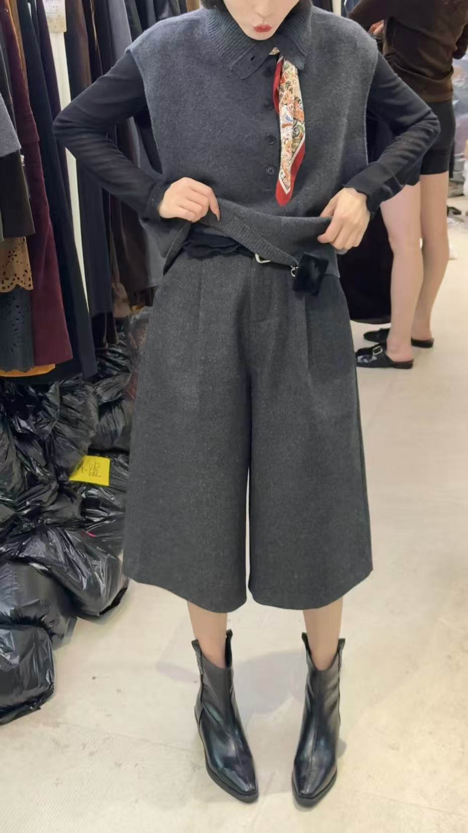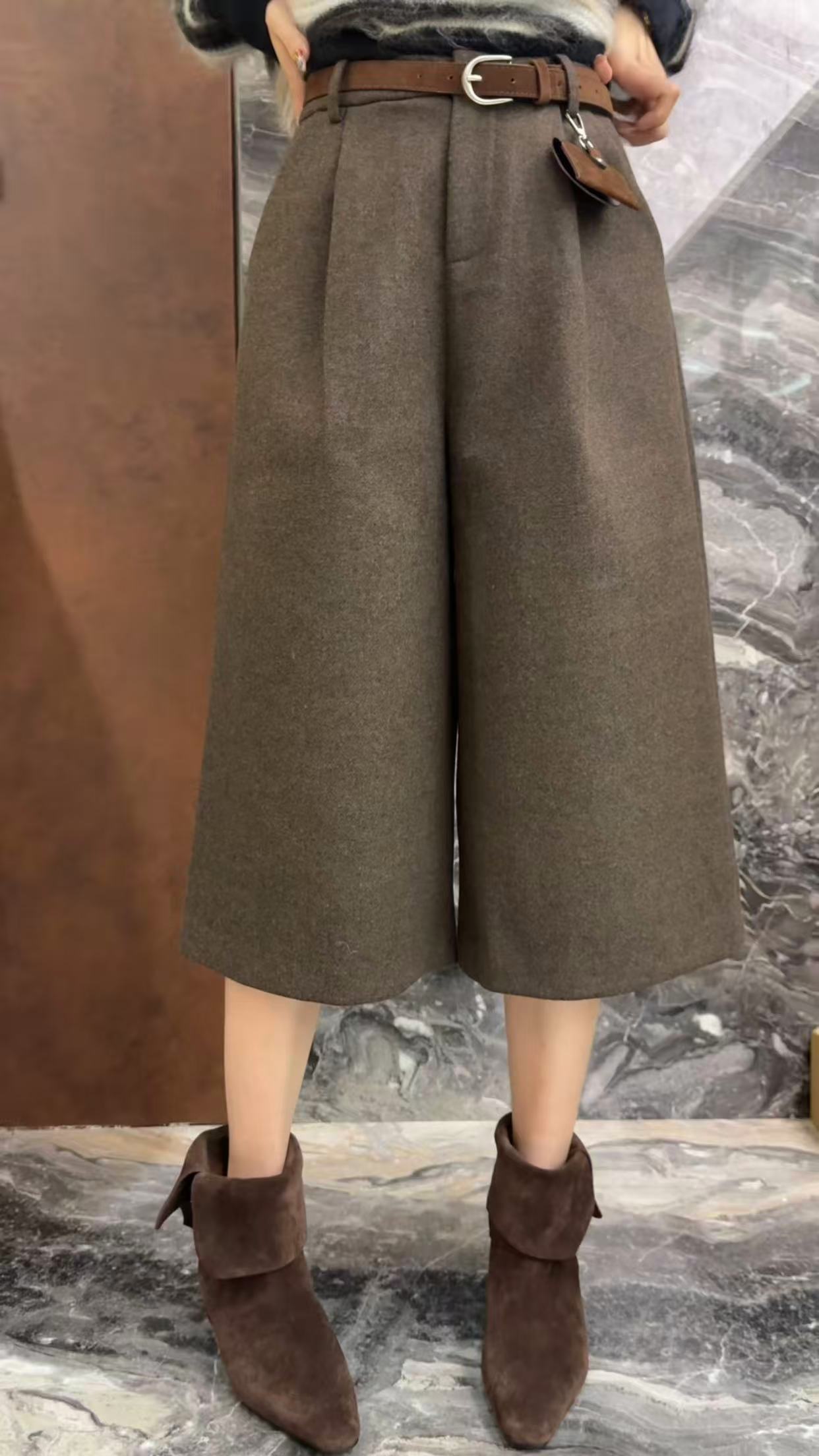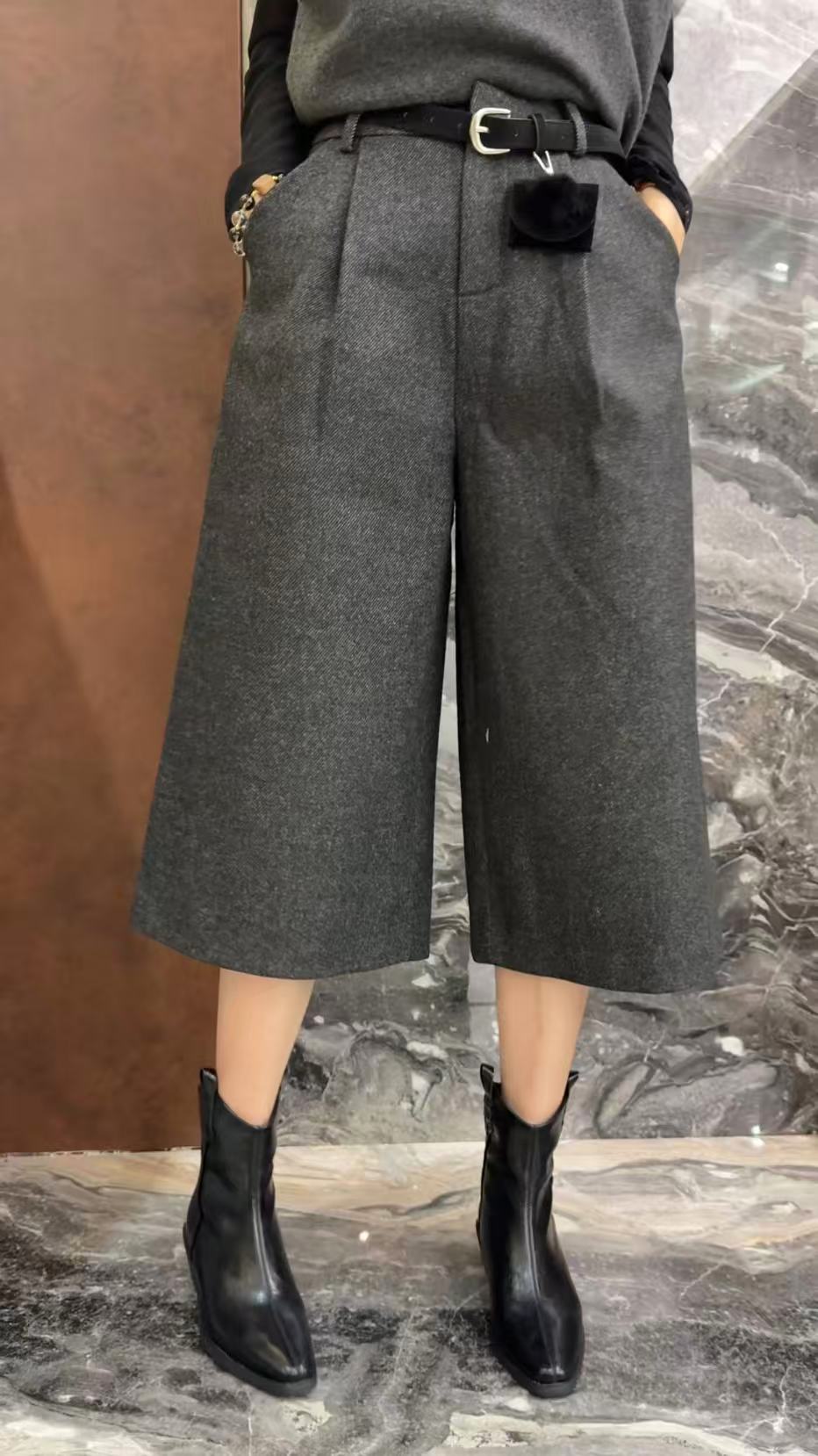曼曼家2025秋冬款高腰配腰包皮带百搭休闲宽松直筒阔腿七分裤8668