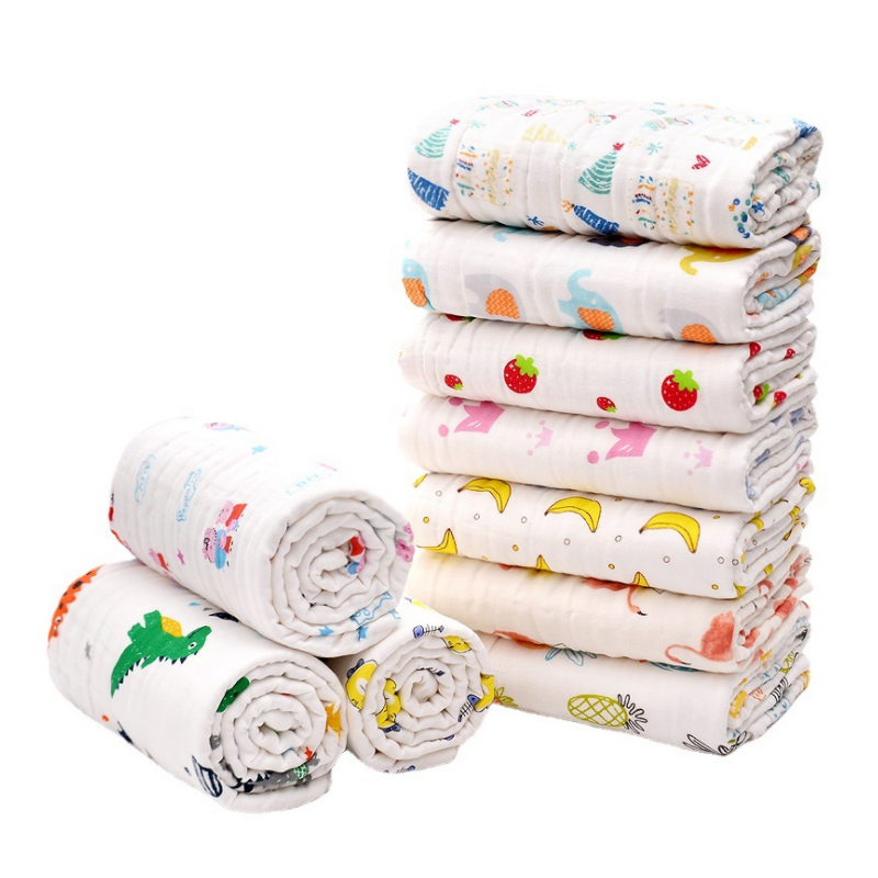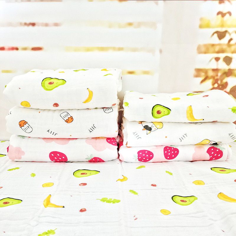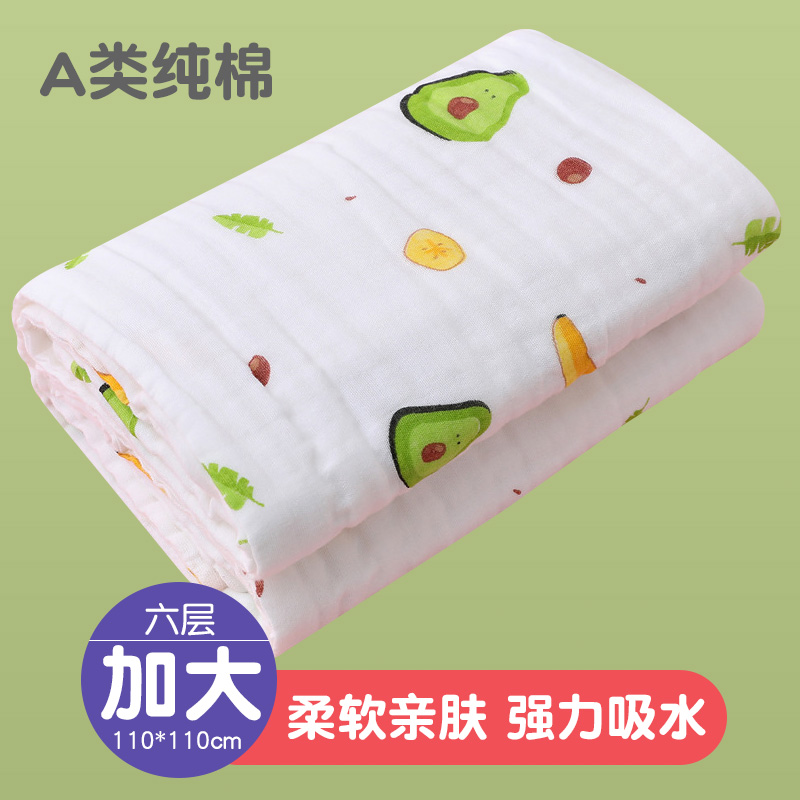 婴儿纯棉纱布浴巾宝宝加大毛巾被空调被洗澡裹巾幼儿盖毯6层110