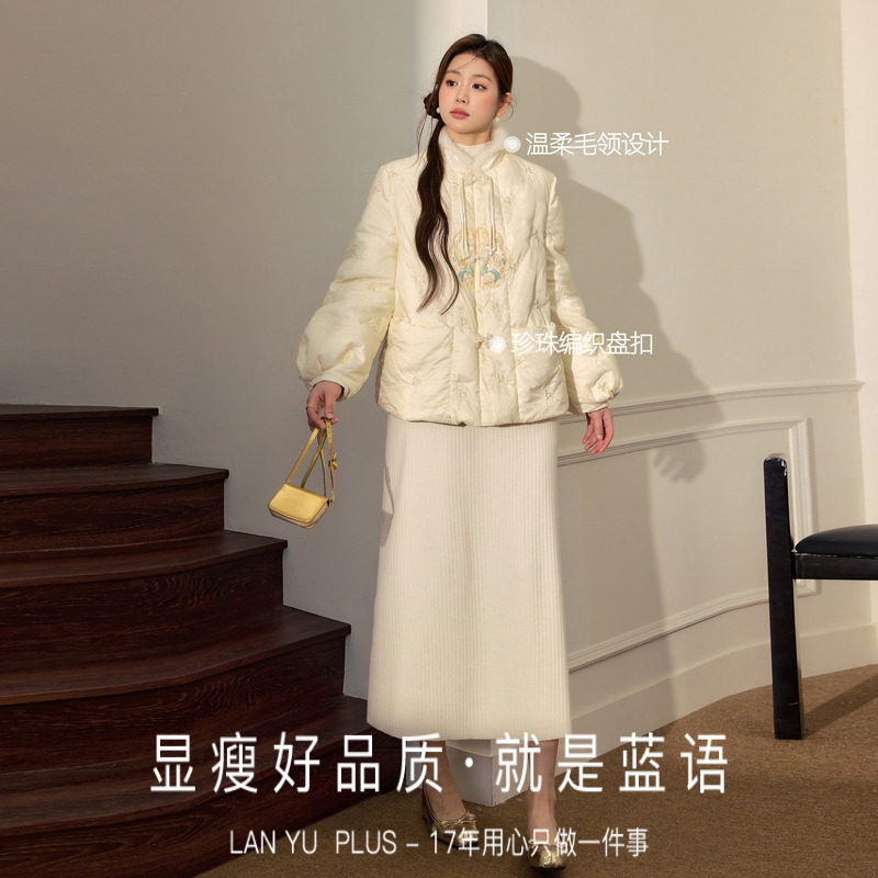蓝语大码胖mm90白鸭绒保暖新中式羽绒服2025冬季今年流行国风上衣