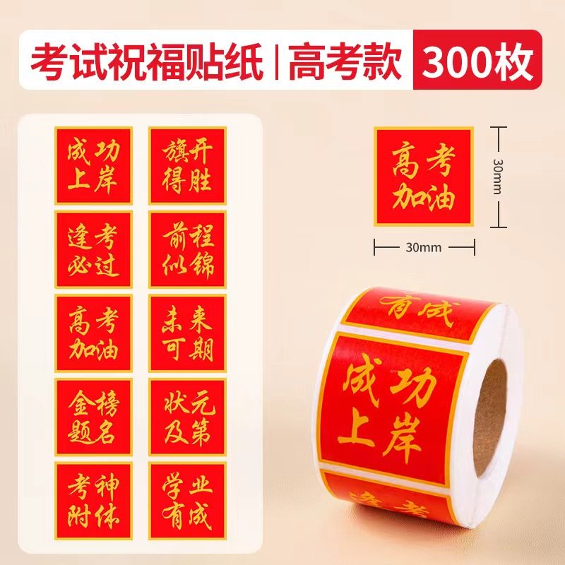 300贴/卷3cm方形考试祝福语贴纸