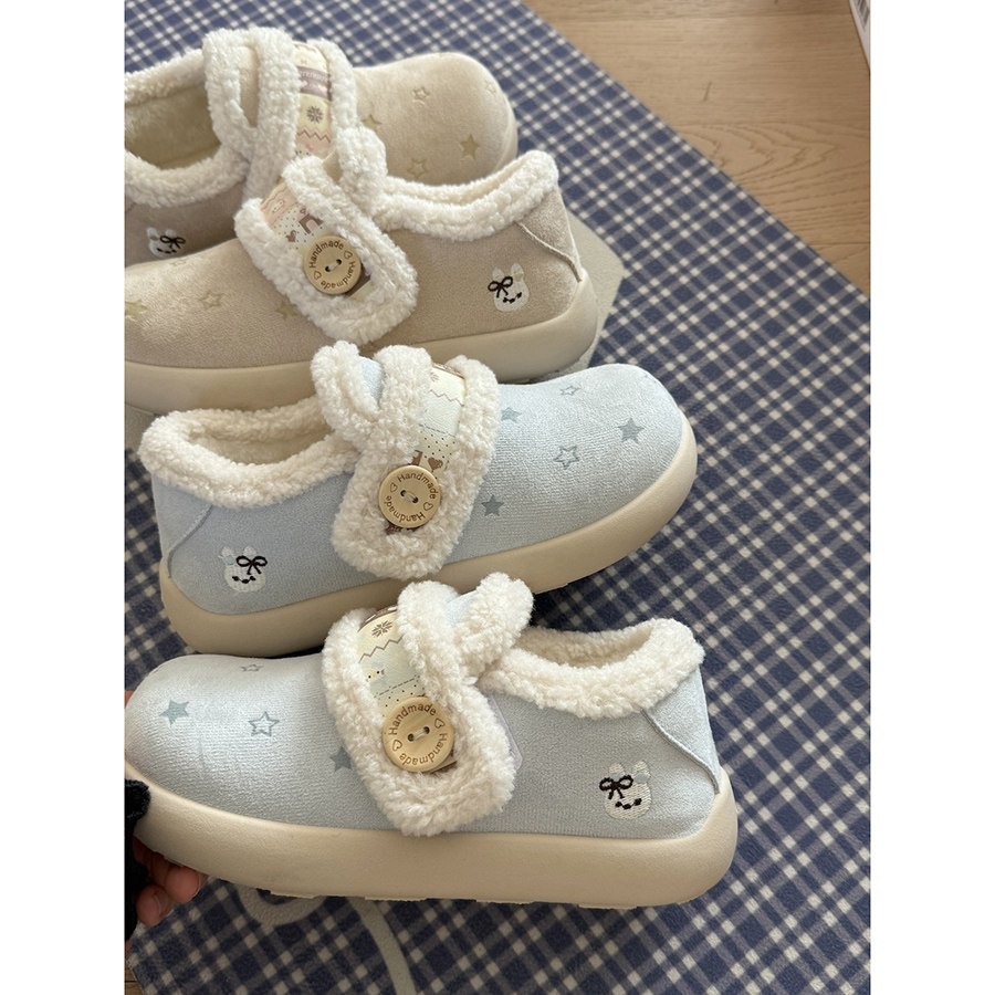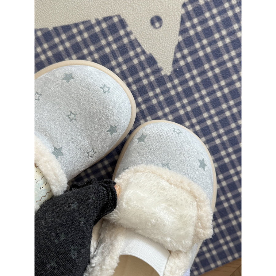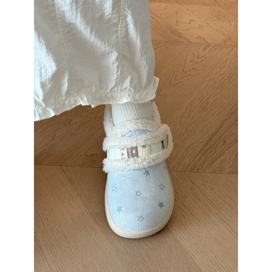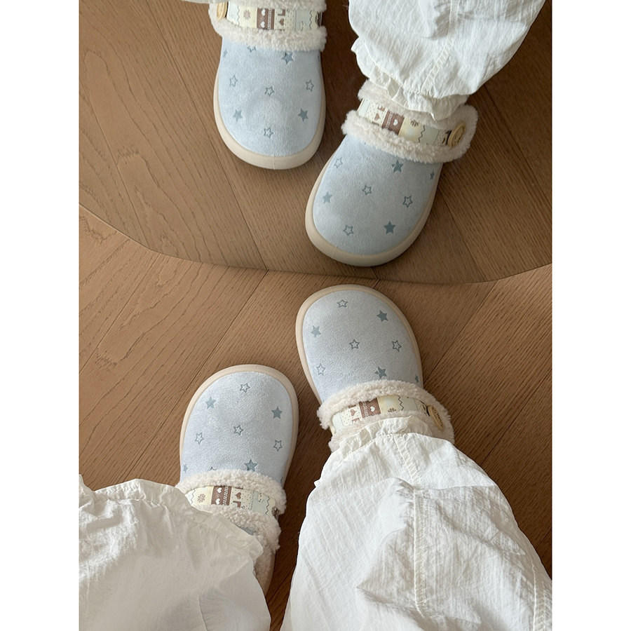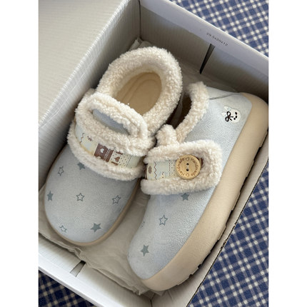 路十三薄荷蓝星星勃肯鞋女2025冬季加绒加厚板鞋配裙子毛毛棉鞋