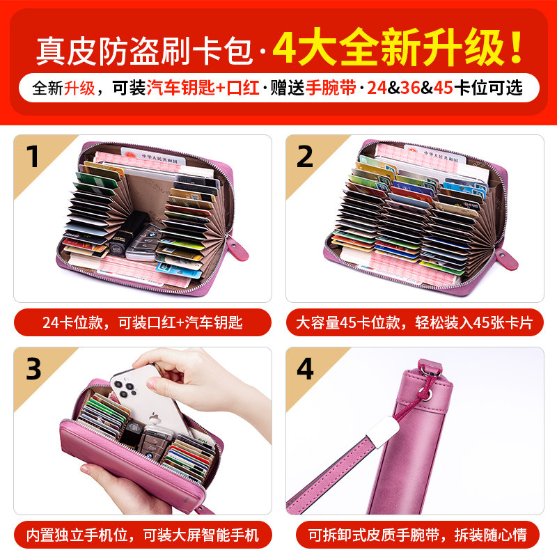 真皮钱包卡包一体防盗刷防消磁