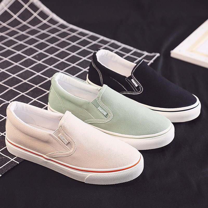套脚帆布鞋女2020年新款学院B风小清新平底百搭一脚蹬懒人鞋女