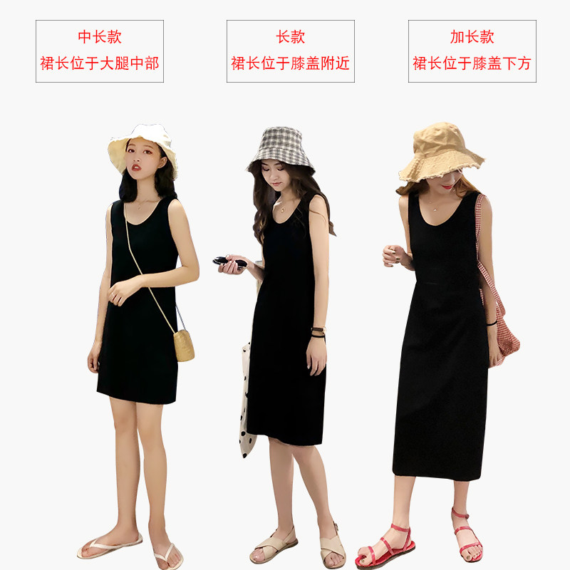 春夏季新款韩版中长款修身显瘦圆领背心打底连衣裙纯棉休闲女装