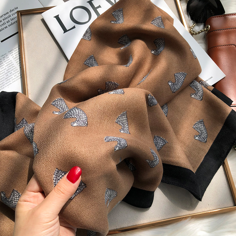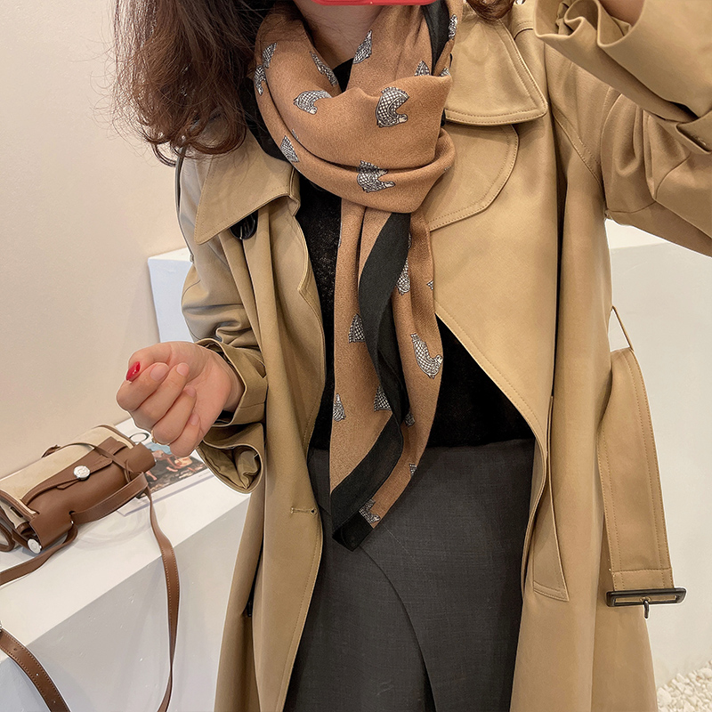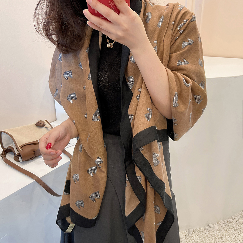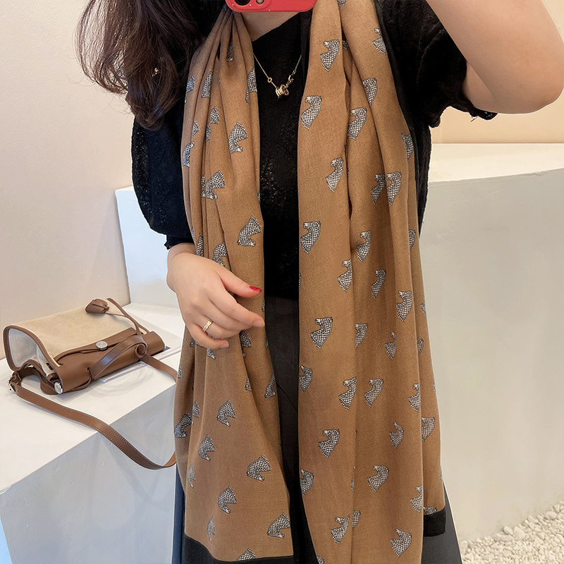 可爱减龄棉麻围巾女秋冬季韩版百搭小马头图案长款纱巾披肩两用