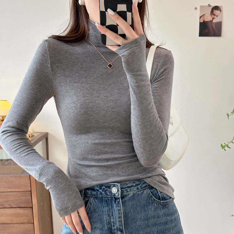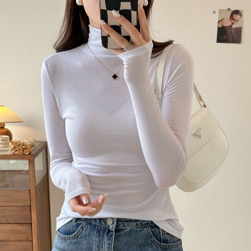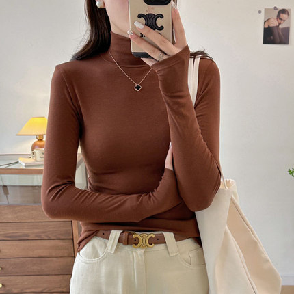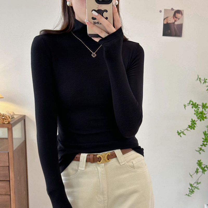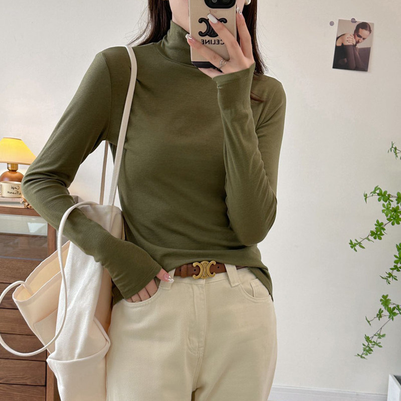 2025年秋冬新款女莱赛尔羊毛百搭亲肤套头纯色修身t恤高领打底衫