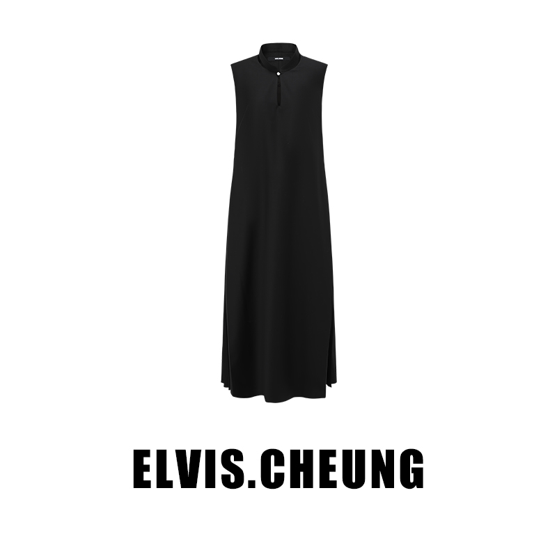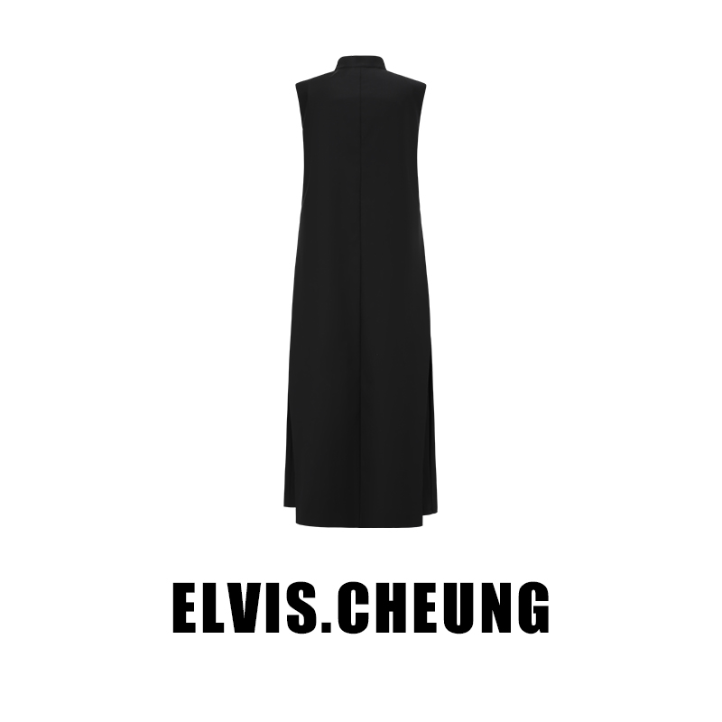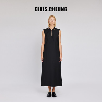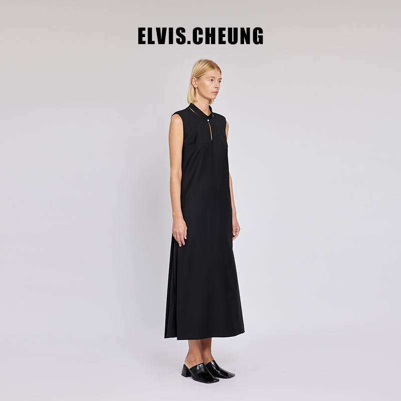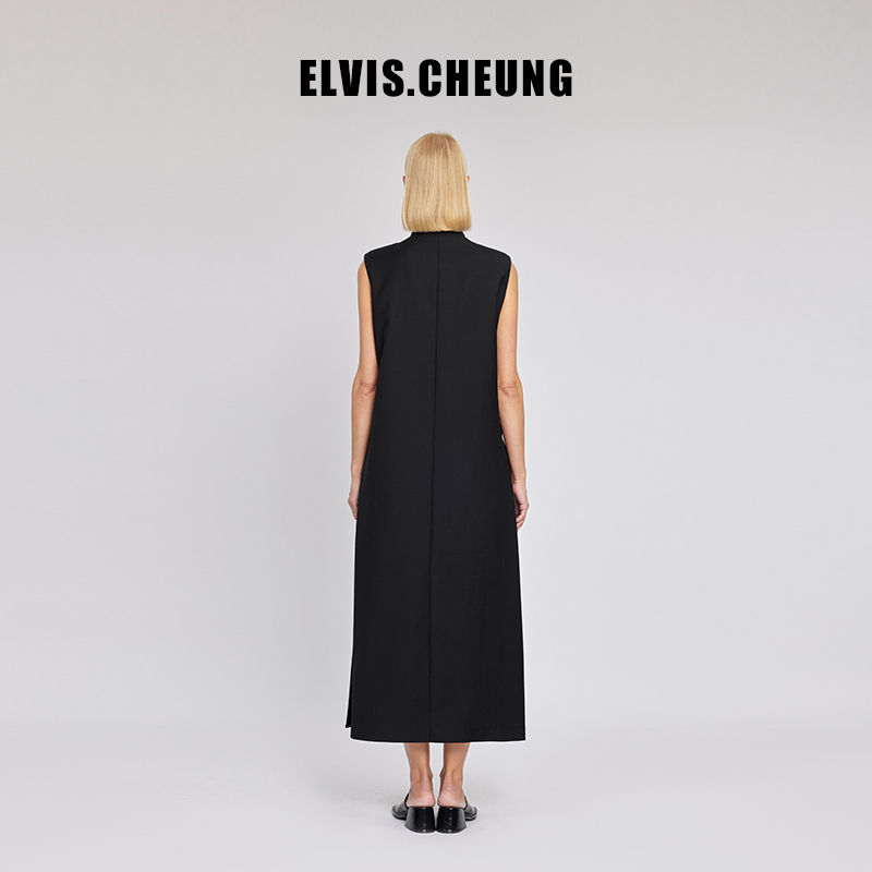 ELVIS.CHEUNG开运春夏新品新中式羊毛精纺内藏褶无袖连衣裙长裙