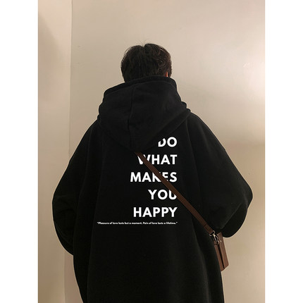 oversize连帽卫衣男春秋加绒美式复古重磅大码慵懒风情侣帽衫外套