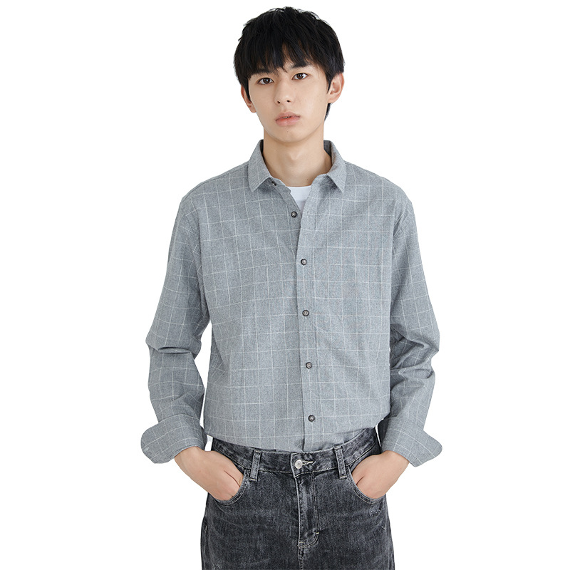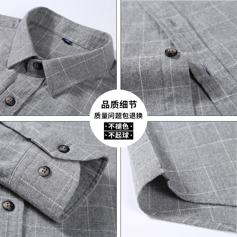 2025男装春上新 日系复古休闲磨毛格子长袖衬衫男士纯棉百搭衬衣