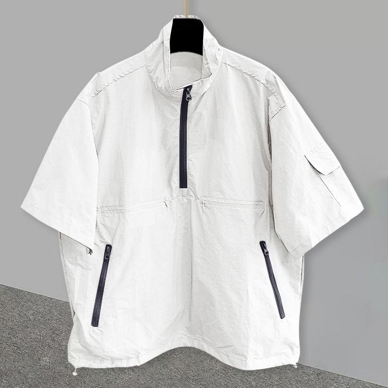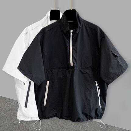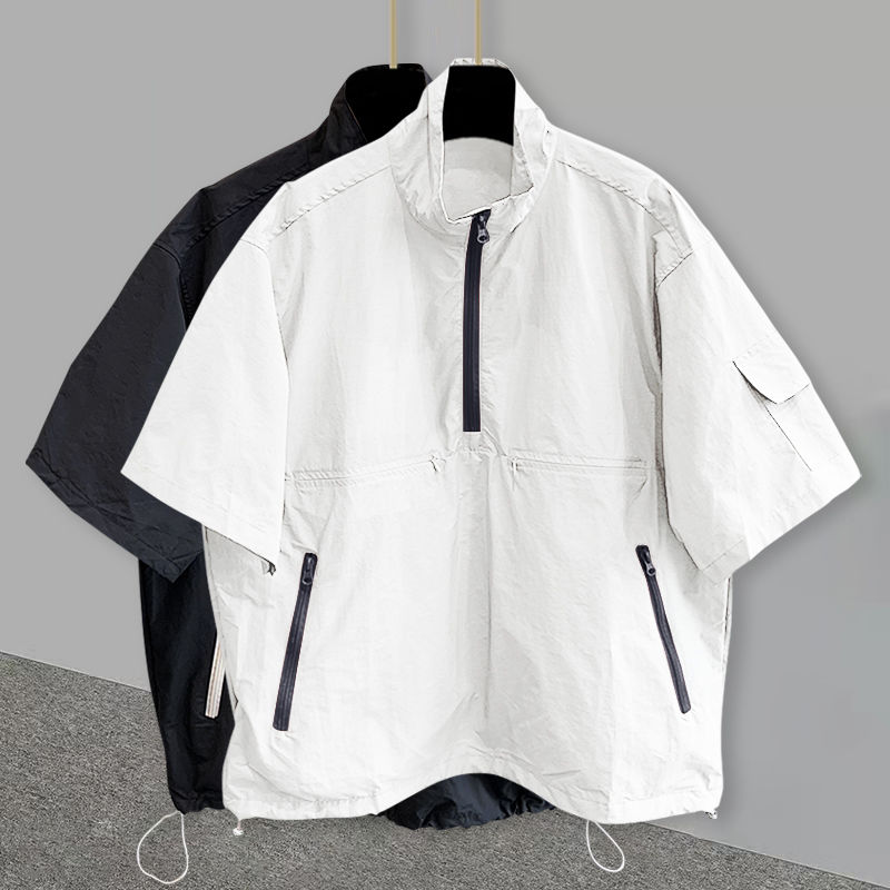 夏季宽松休闲设计感半拉链上衣