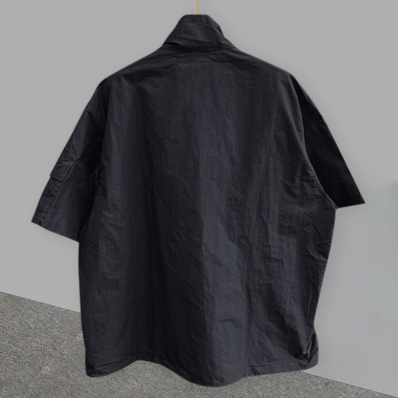 加肥特大码300斤立领工装T恤短袖男夏季宽松休闲设计感半拉链上衣