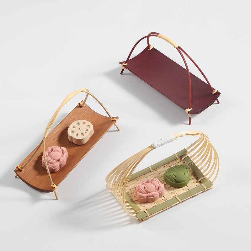 手工竹编提篮 家用茶点盘水果篮子糕点托盘创意小竹篮 结婚竹编篮
