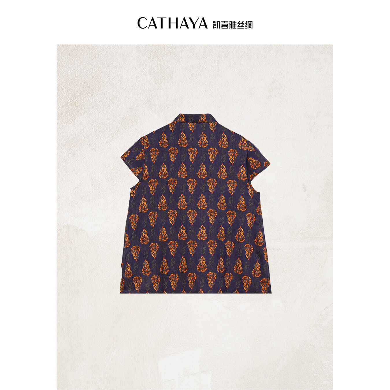 CATHAYA/凯喜雅立领中式短袖上衣时尚气质2025宽松DUK2FOJM461