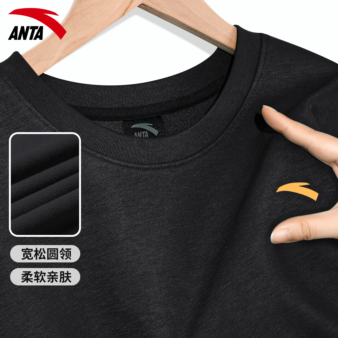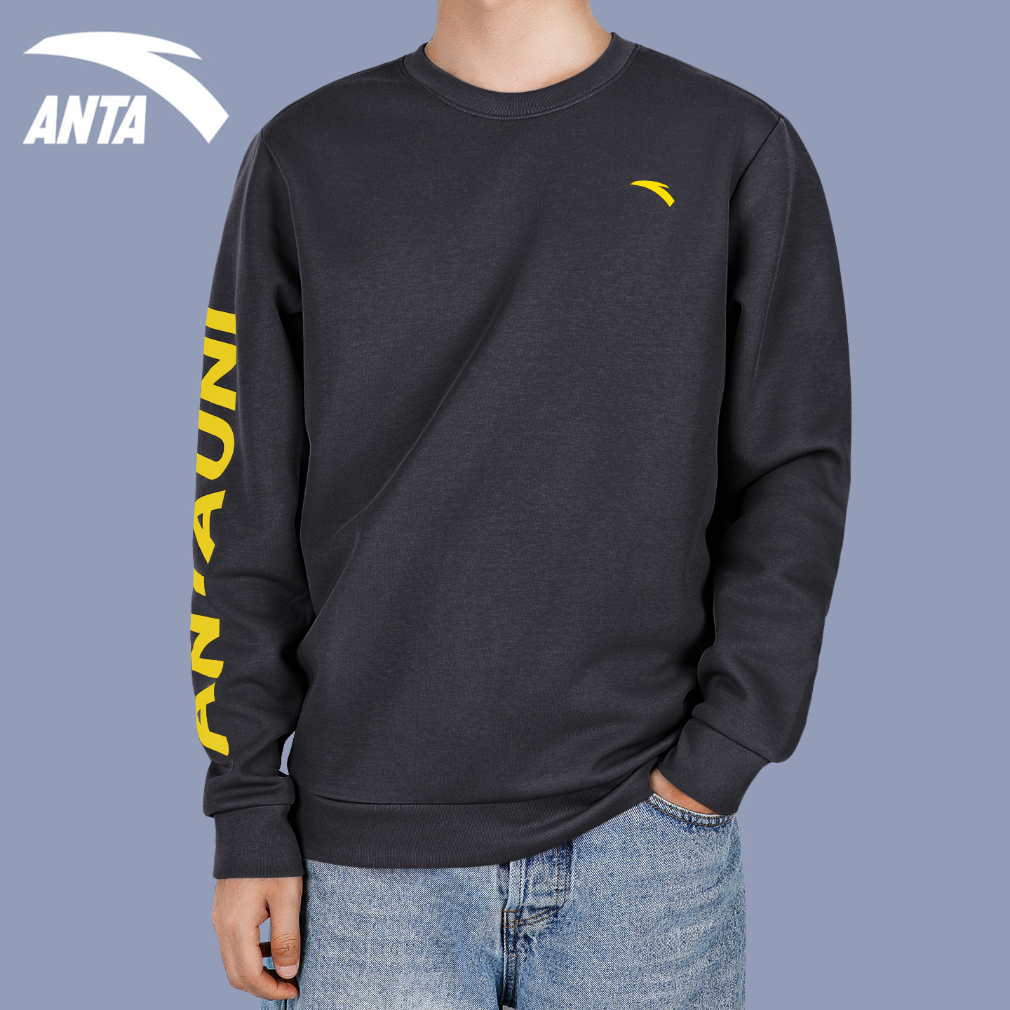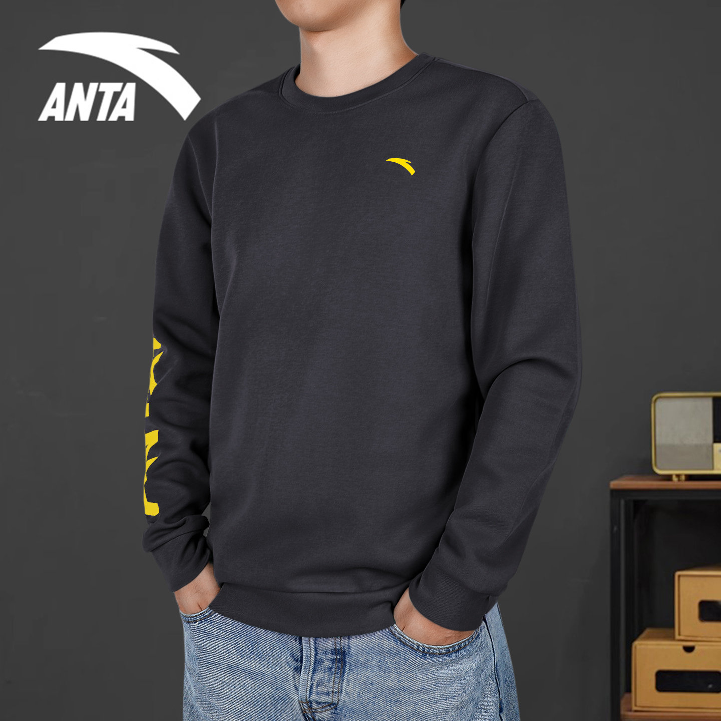 安踏卫衣男秋季新款圆领套头衫长袖男士运动宽松大码休闲内搭上衣