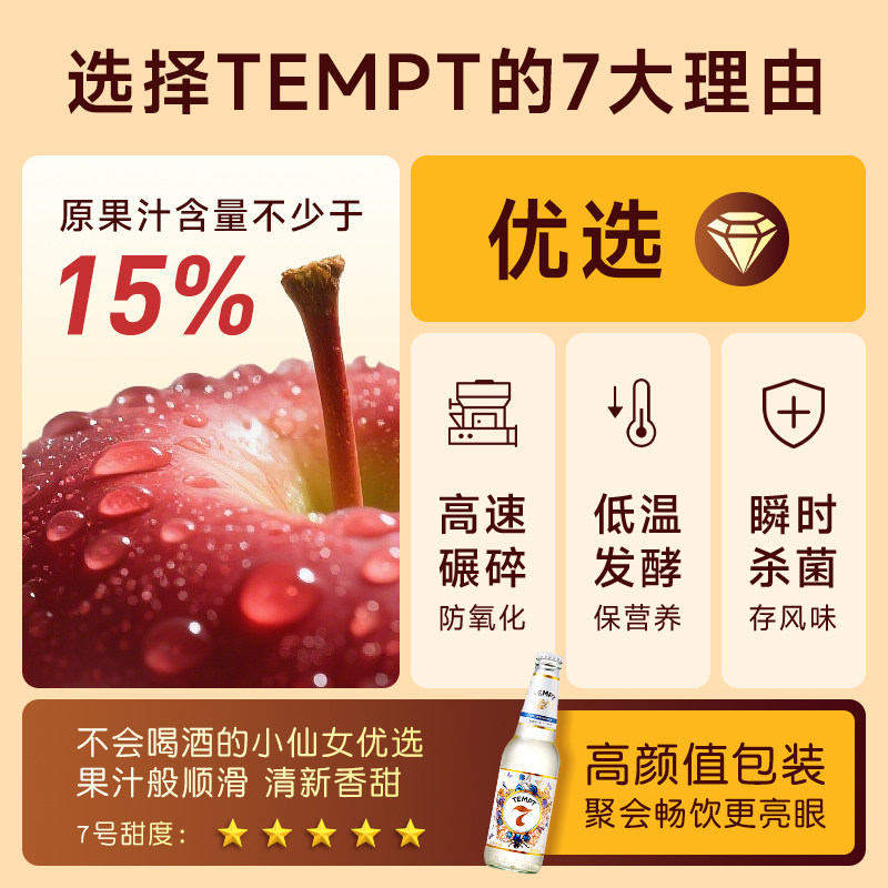 TEMPT诱惑7号9号微醺西打甜果啤酒接骨木花味低度甜酒聚会露营