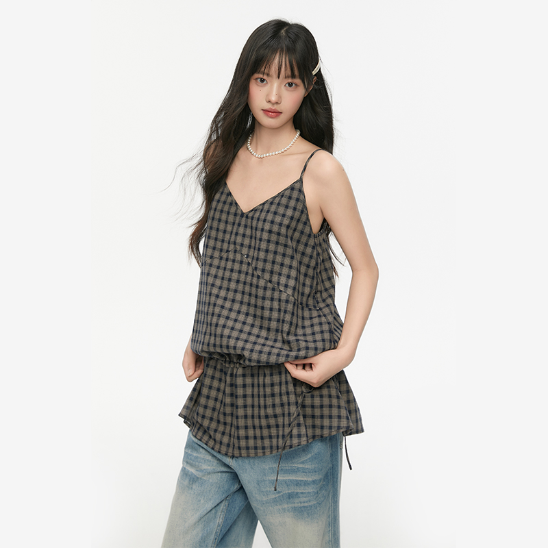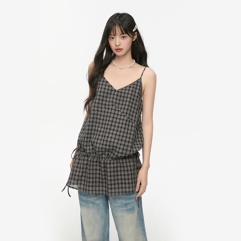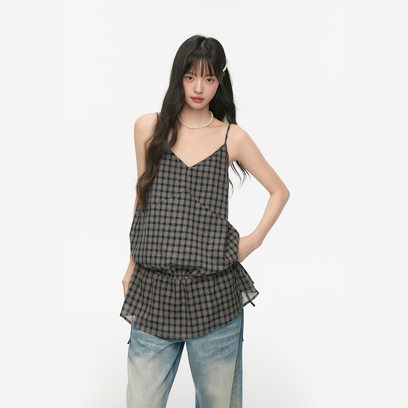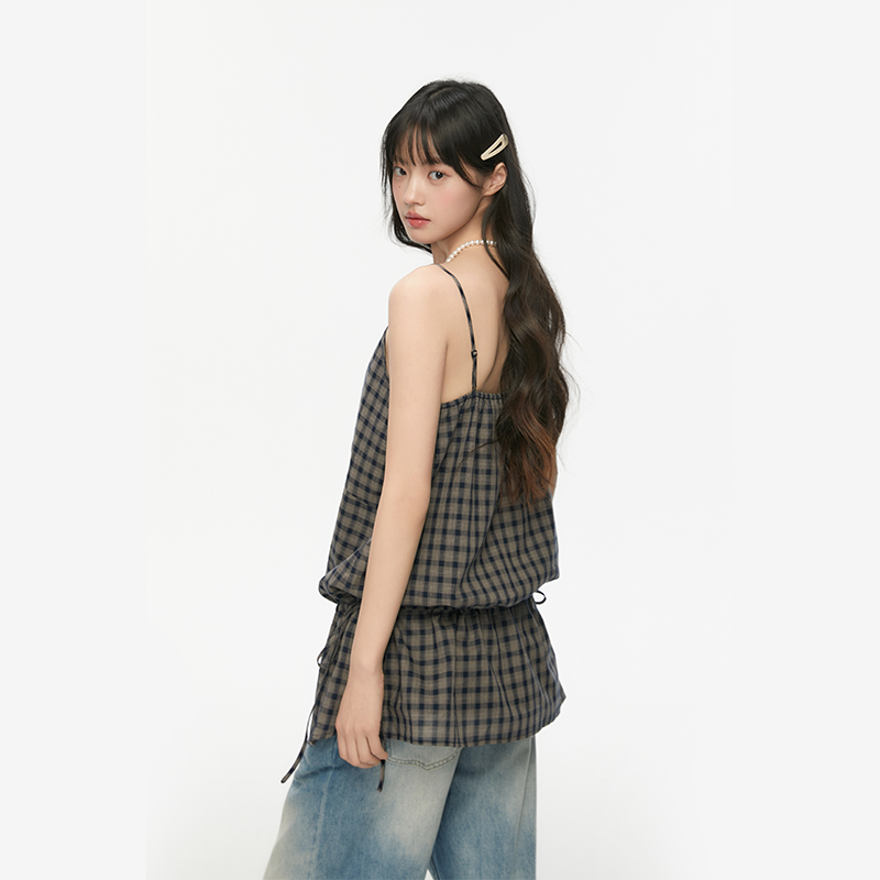 Pink ers联名款格子吊带连衣裙女夏季新款收腰显瘦无袖背心裙子女