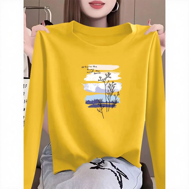 春秋100%纯棉长袖印花圆领T恤女时尚新款洋气韩版百搭宽松ins上衣