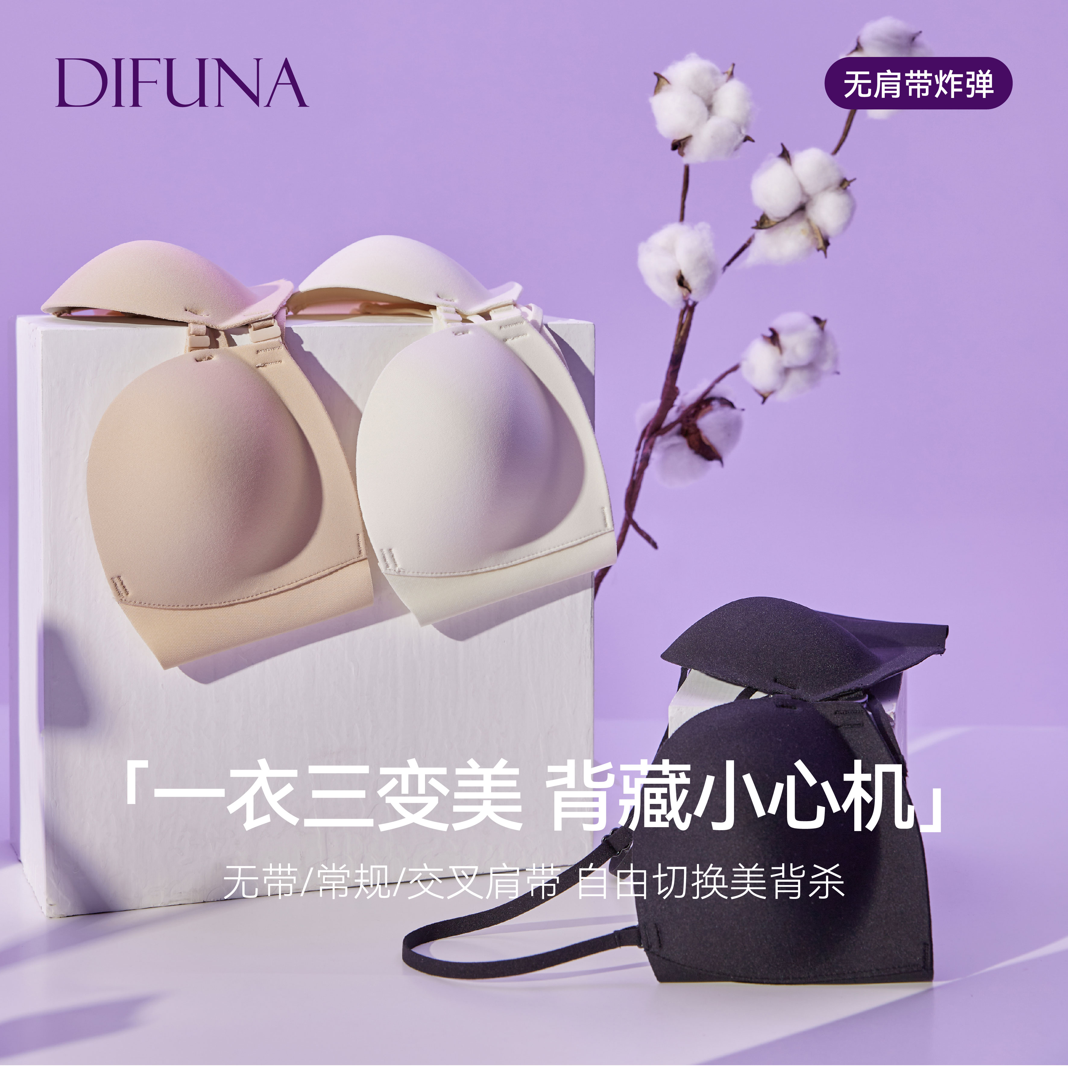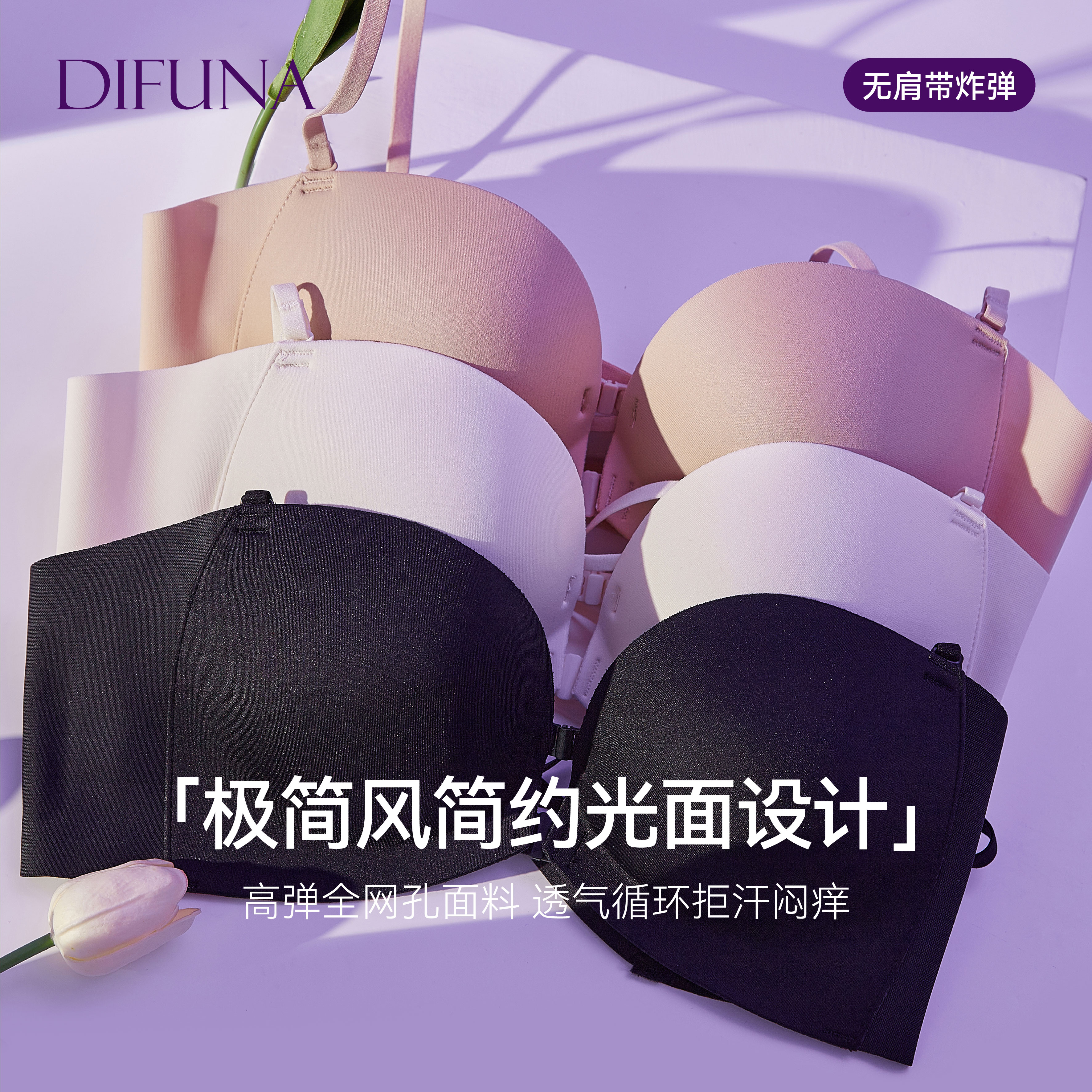 蒂芙娜DIFUNA前扣无肩带小胸聚拢抹胸无痕美背裹胸文胸防滑内衣女