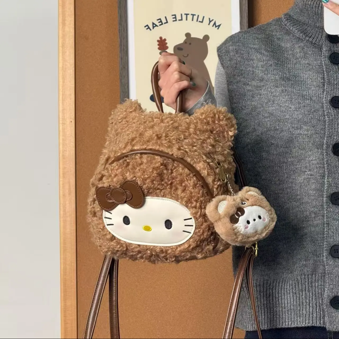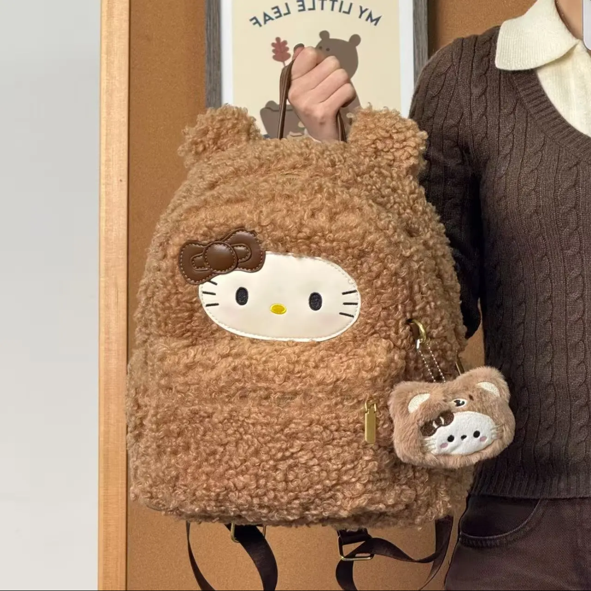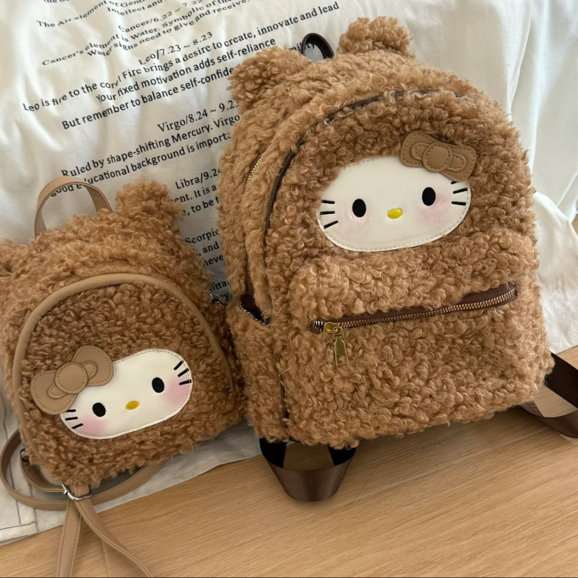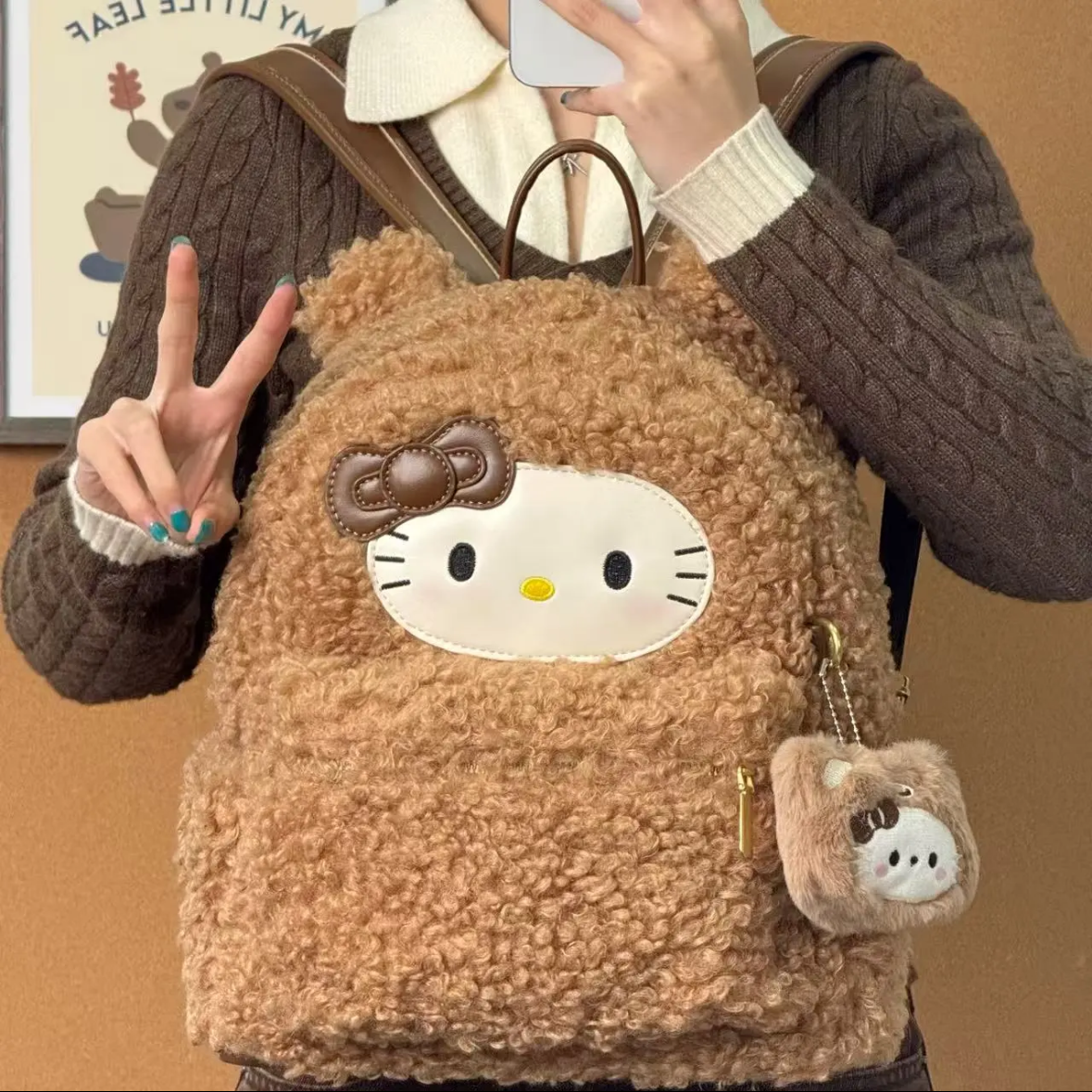 卡通可爱小猫双肩包包女2025冬季新款毛绒手提背包大学生上课书包