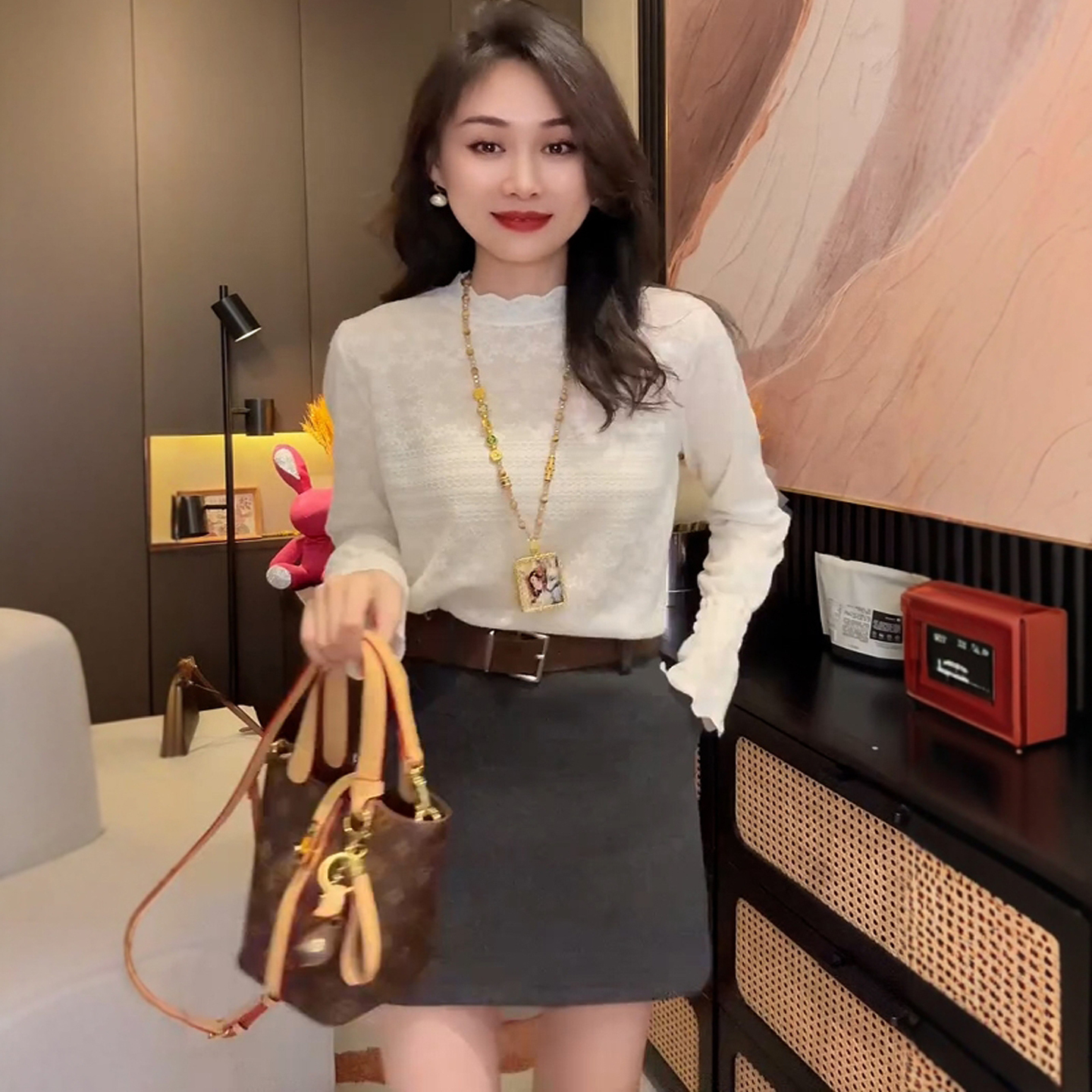 法式提花内搭蕾丝打底衫女秋季洋气小衫外穿长袖t恤独特别致上衣