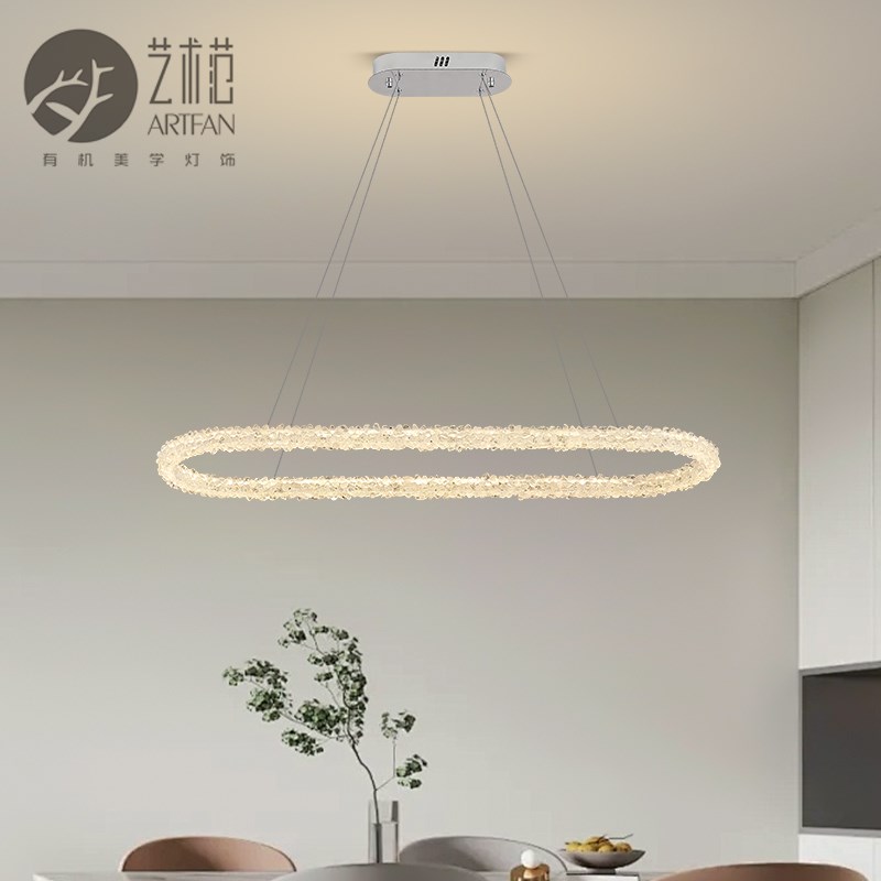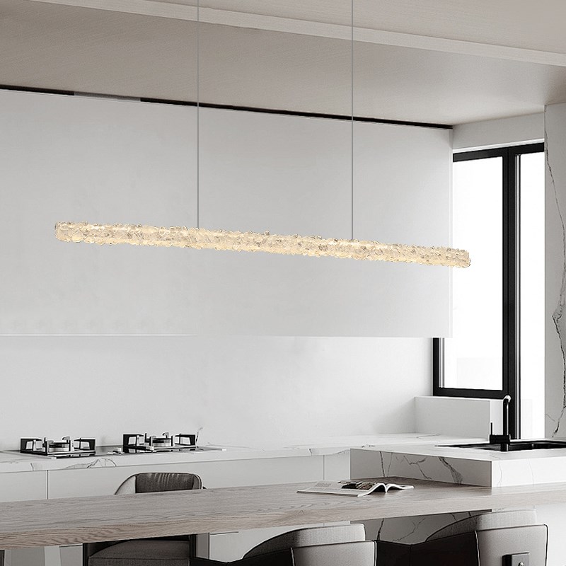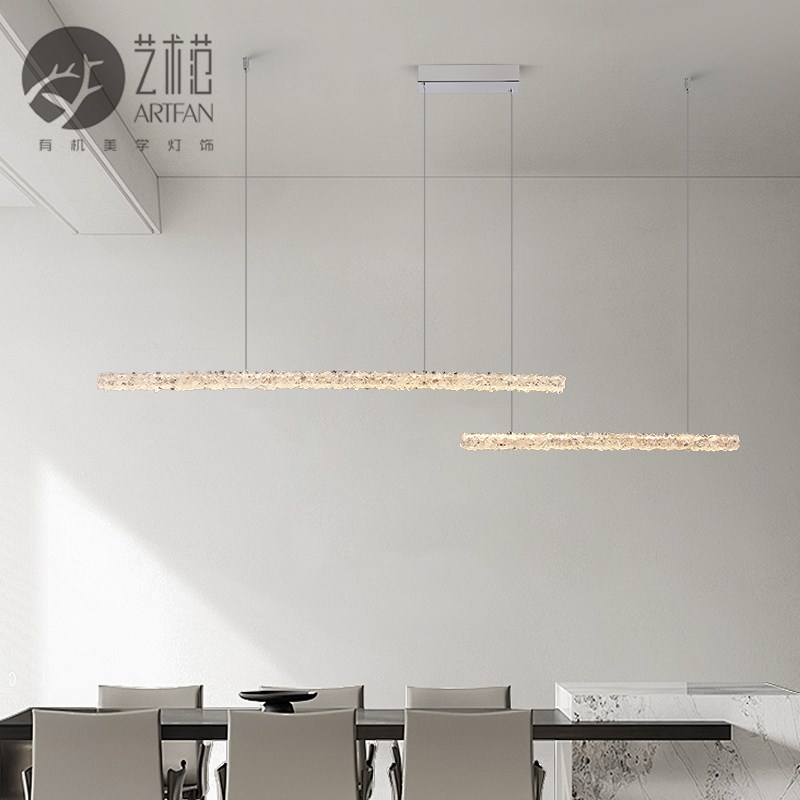 餐厅吊灯2024新款高级感天然水晶现代简约意式吧台餐桌长条一字灯