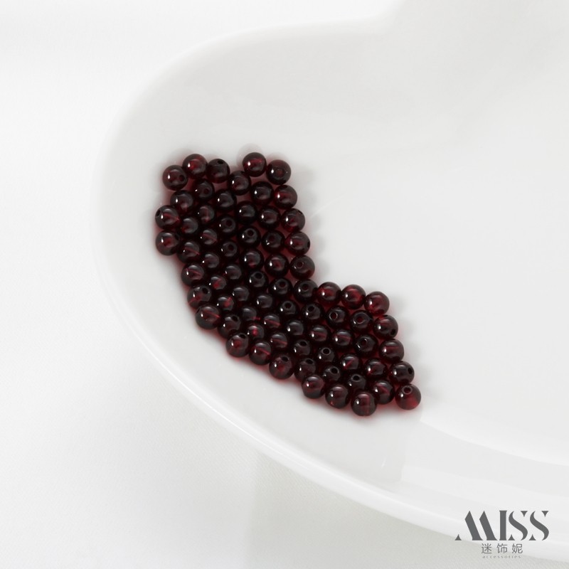 天然原石圆珠无优化石榴石酒红色3mm/4mm珠子diy手工手链项链串珠