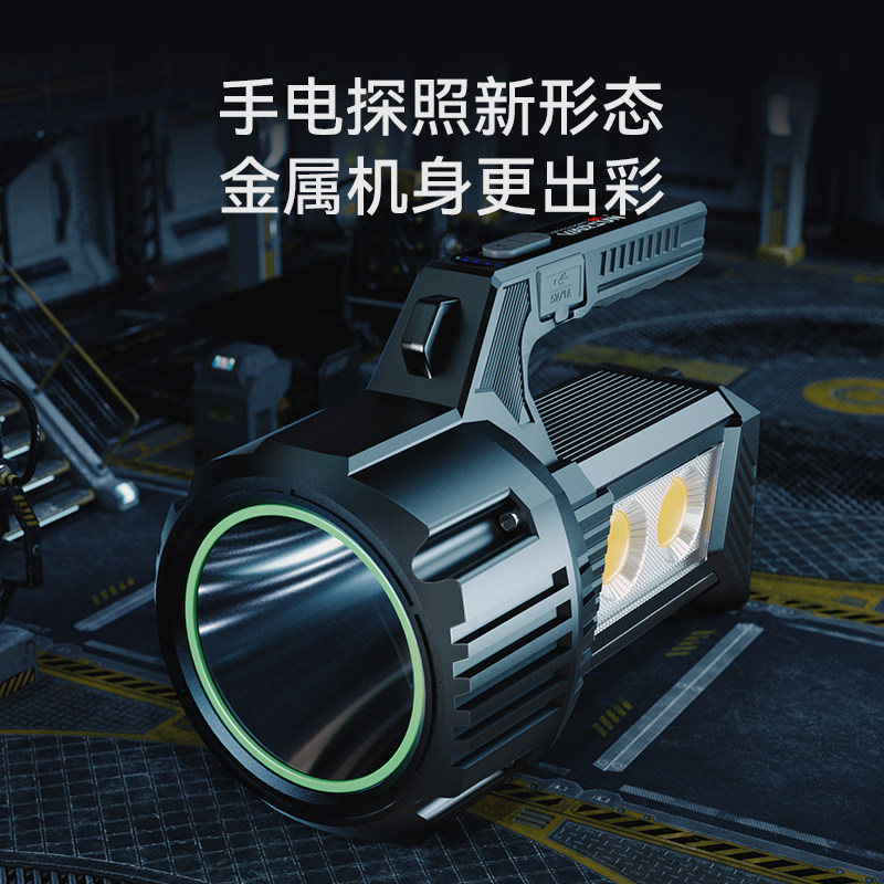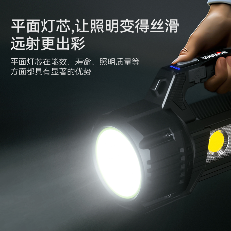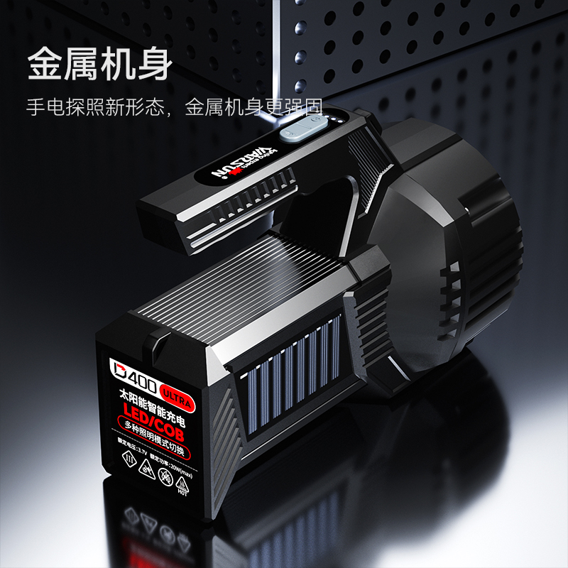 沃尔森D400手电筒强光充电超亮户外手提远射应急照明太阳能探照灯