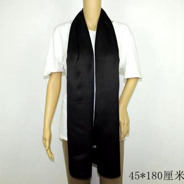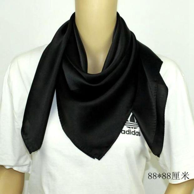 定制缎面光泽天然真丝素绉缎低调百搭纯素黑色方长方巾丝披肩围巾