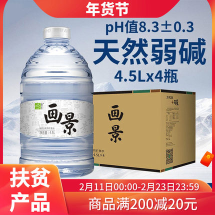 画景弱碱性天然矿泉水4.5L*4瓶整箱泡茶水大瓶大桶18升含锶饮用水