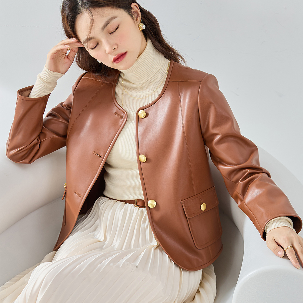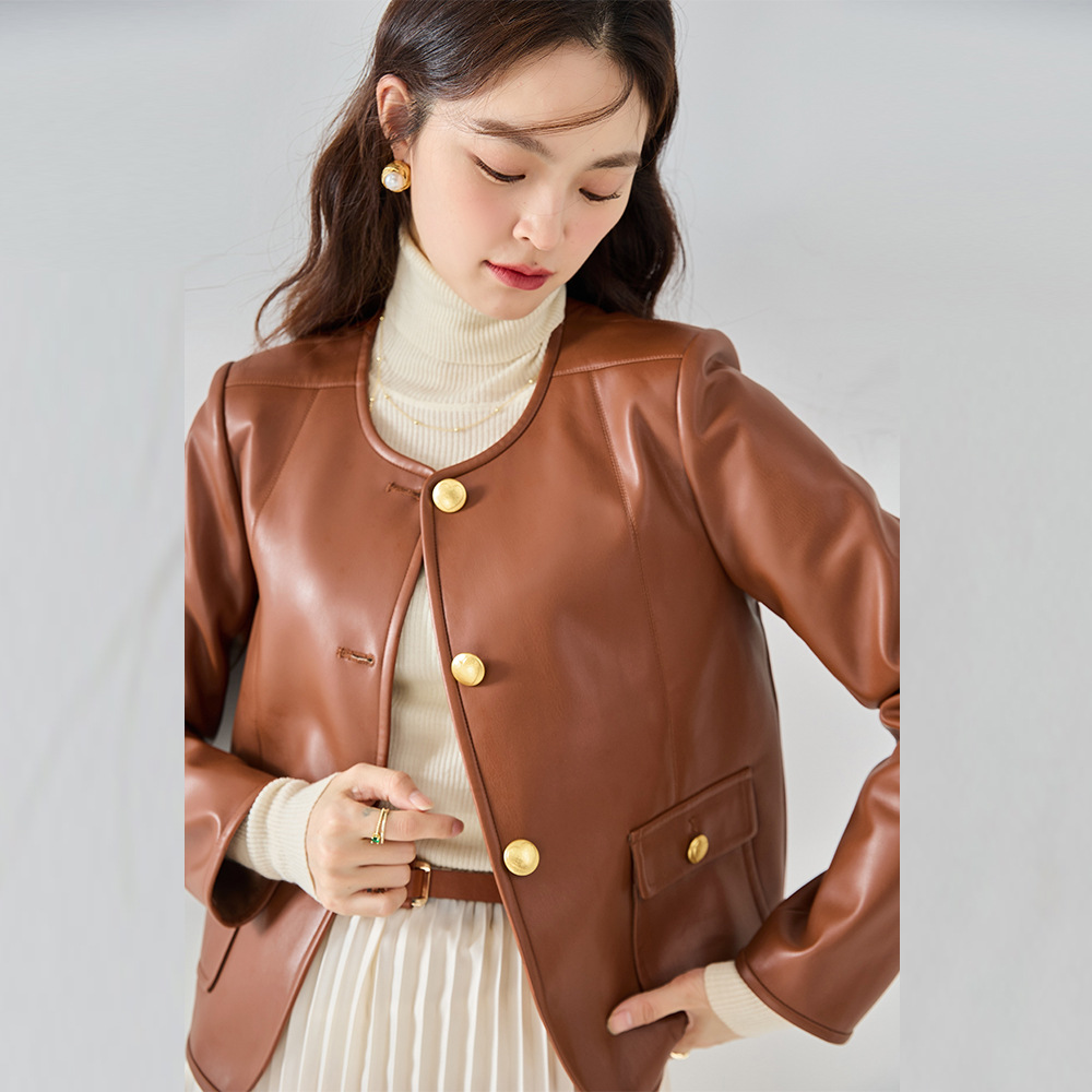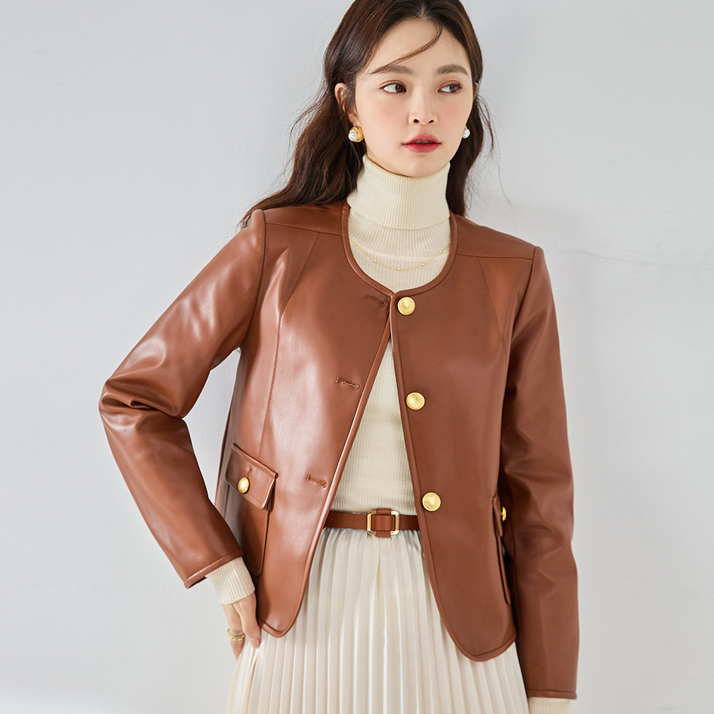 秋季新款法式气质修身显瘦设计感通勤小香风宽松短款外套皮衣