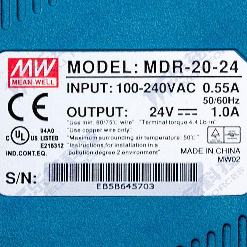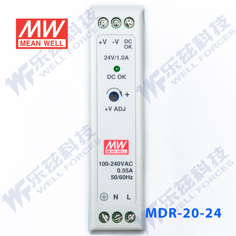 明纬24V电源24W MDR-20-24 导轨式 220V转24V直流稳压 台湾品牌