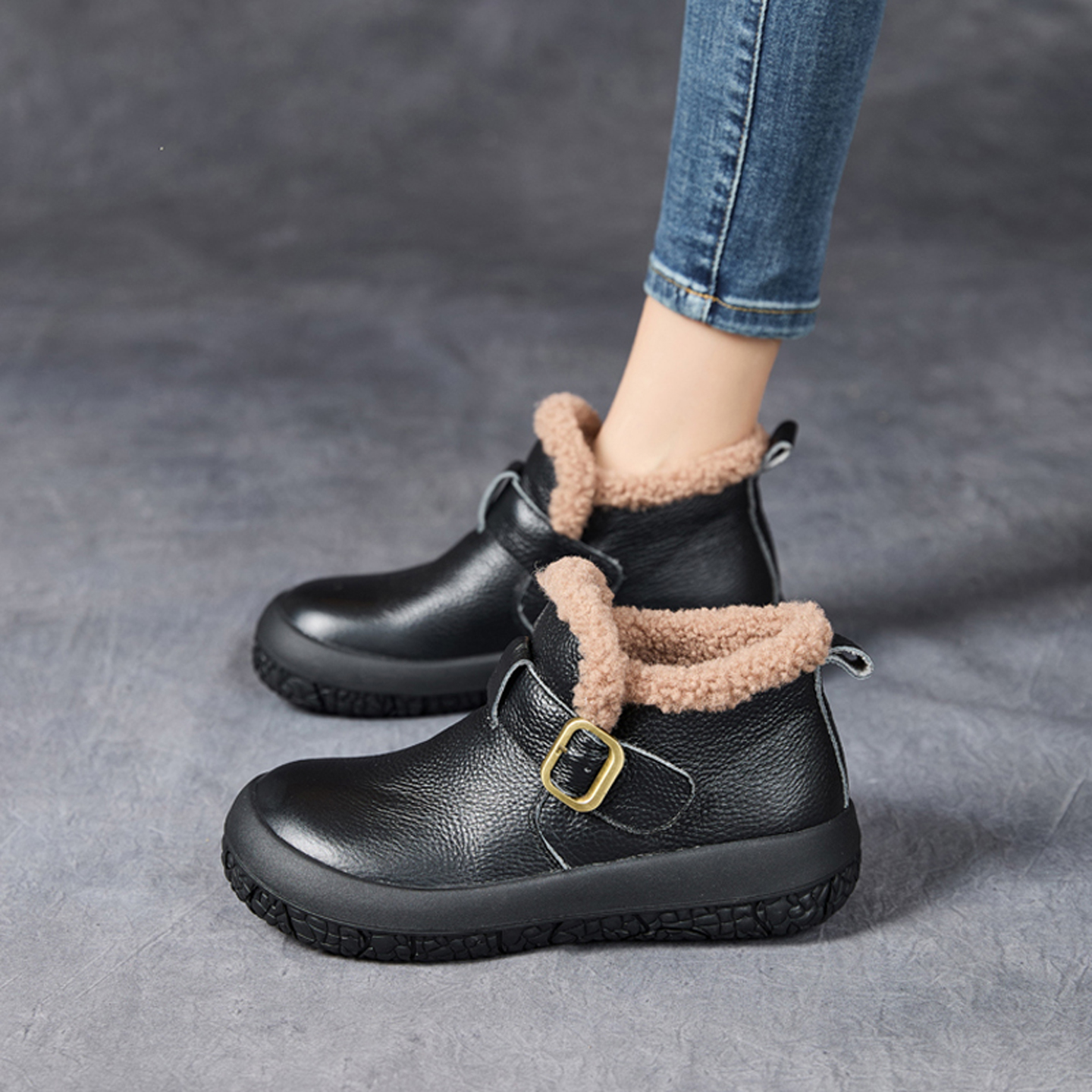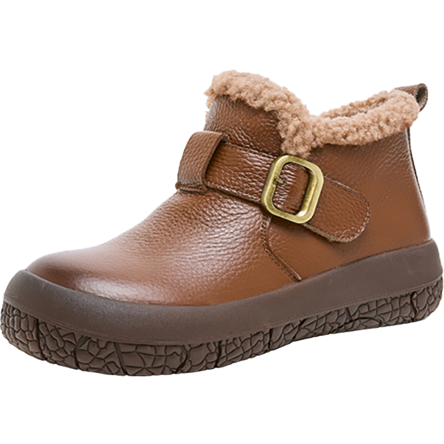 秋冬真皮短靴中老年妈妈鞋保暖加绒雪地靴防滑软底舒适厚底女靴