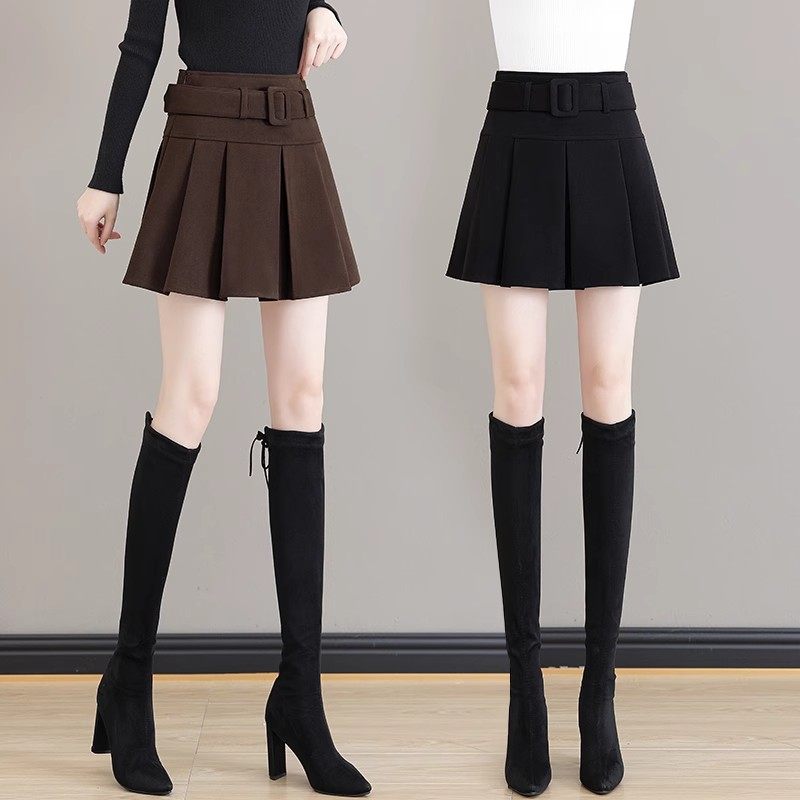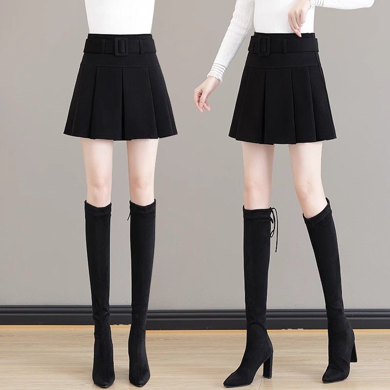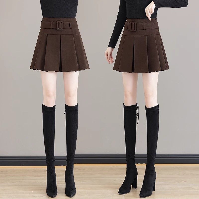 毛呢百褶裙女秋冬2025新款高腰显瘦半身a字裙防走光短裙蓬蓬伞裙