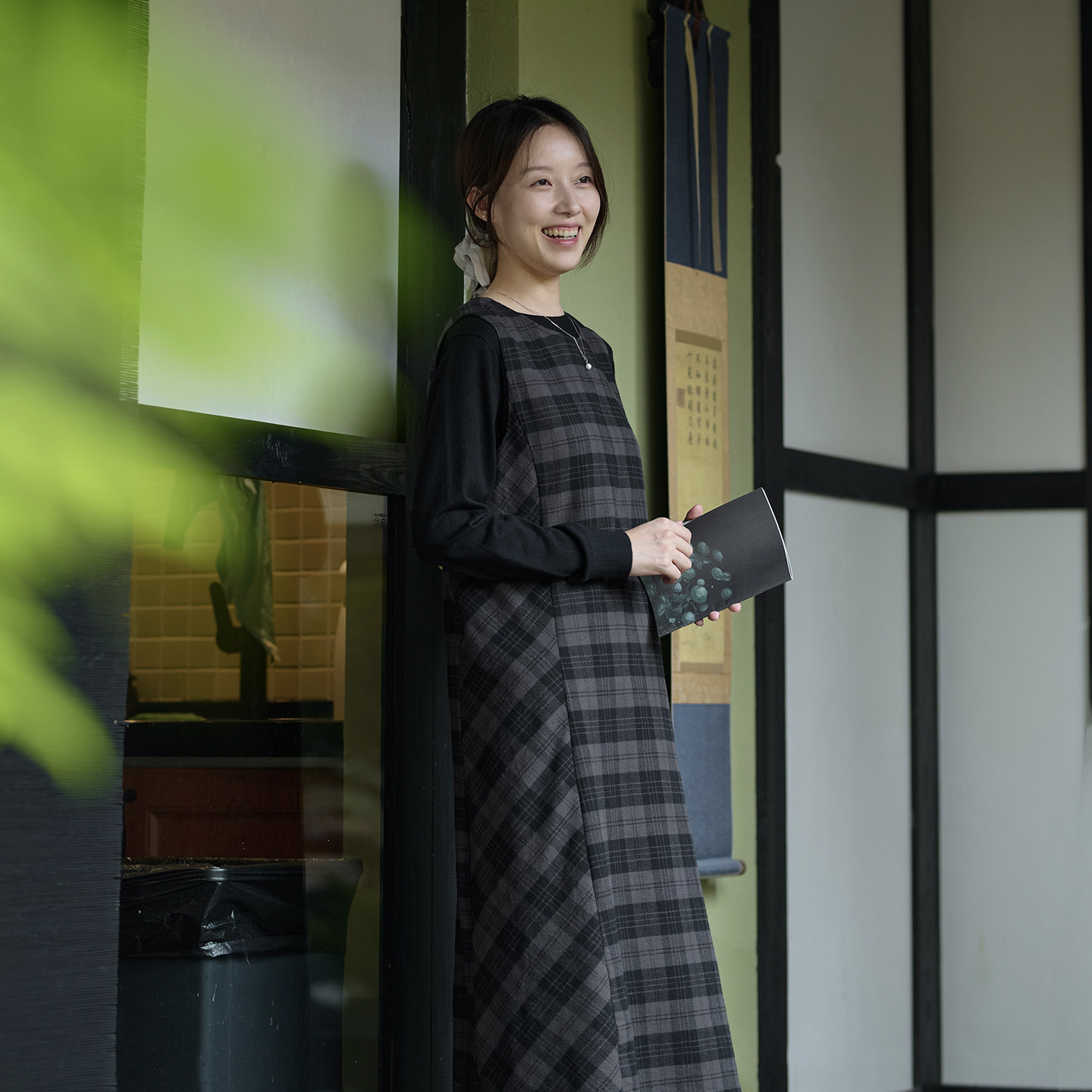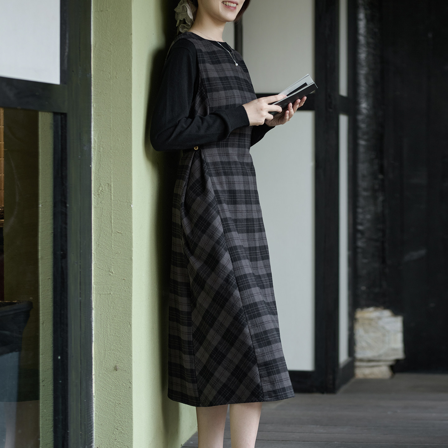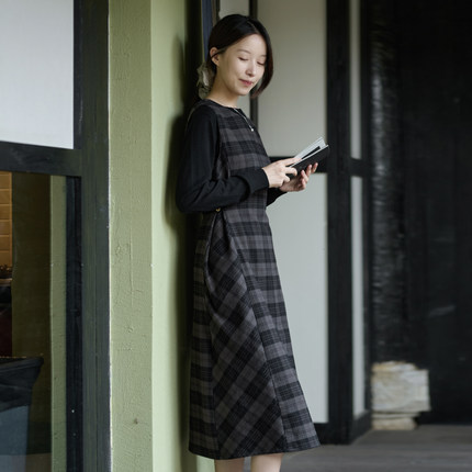 25QDC-114【绿波】前世今生复古文艺圆领减龄格子修身背心裙