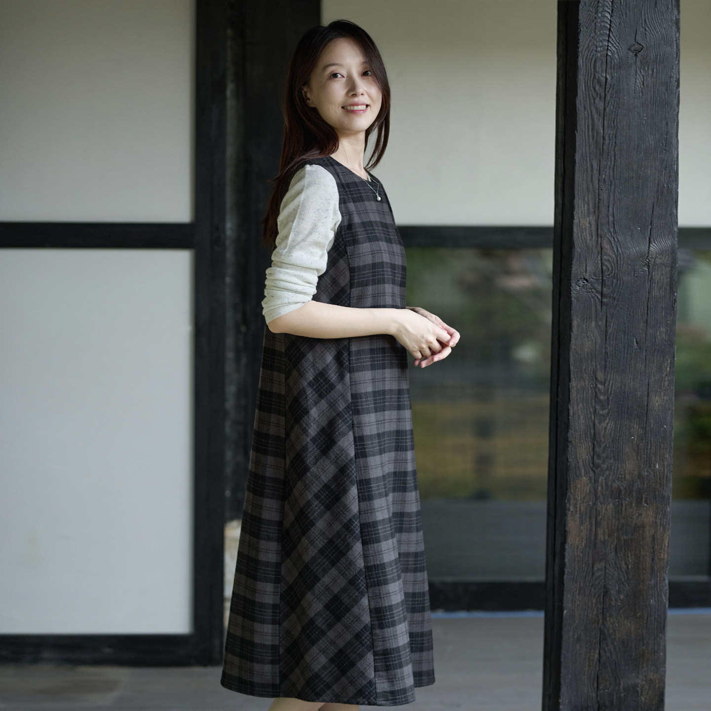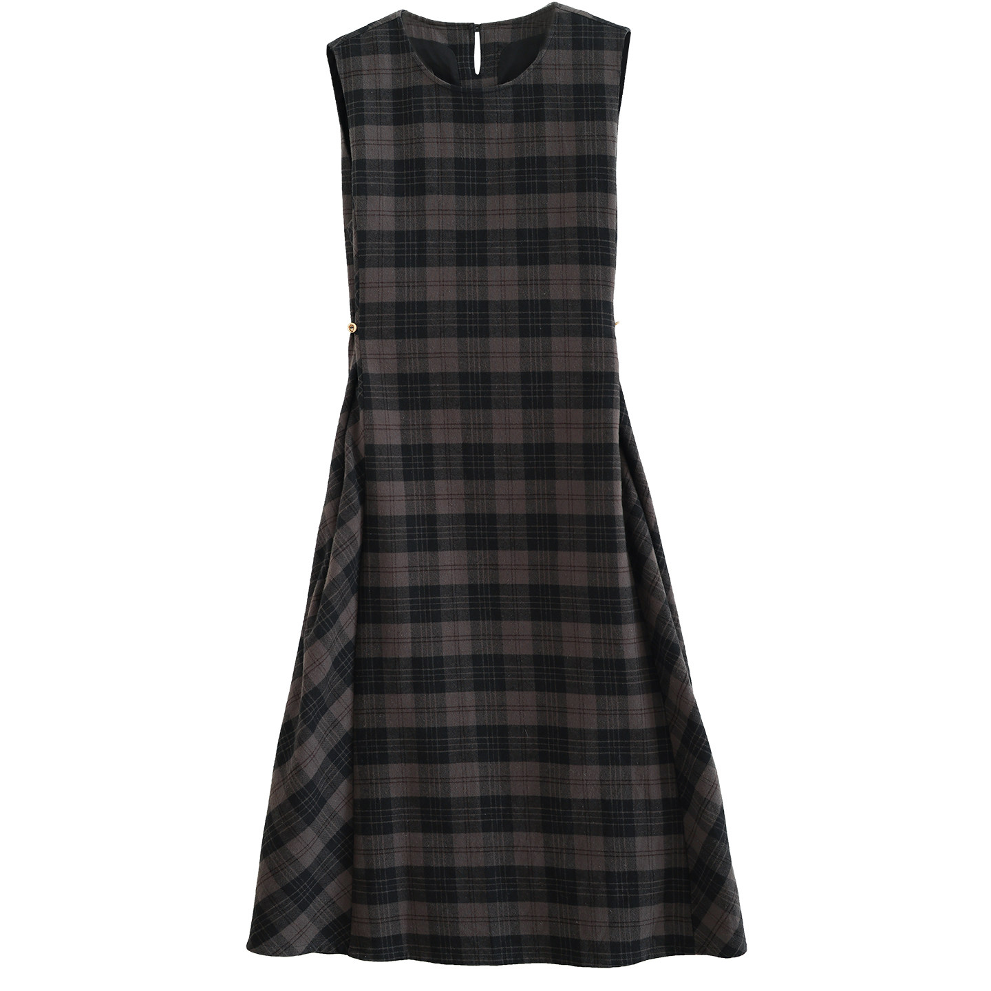 文艺圆领减龄格子修身背心裙