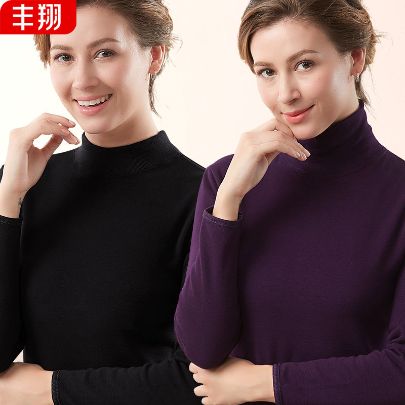 女士高领保暖衣加绒加厚秋衣中老年人内衣单件上衣打底衫长袖冬季