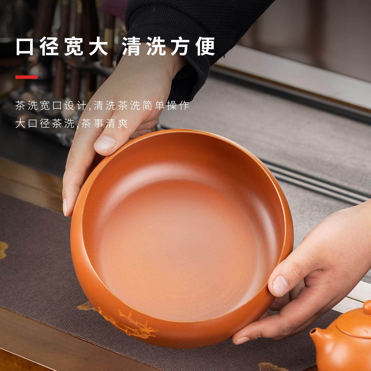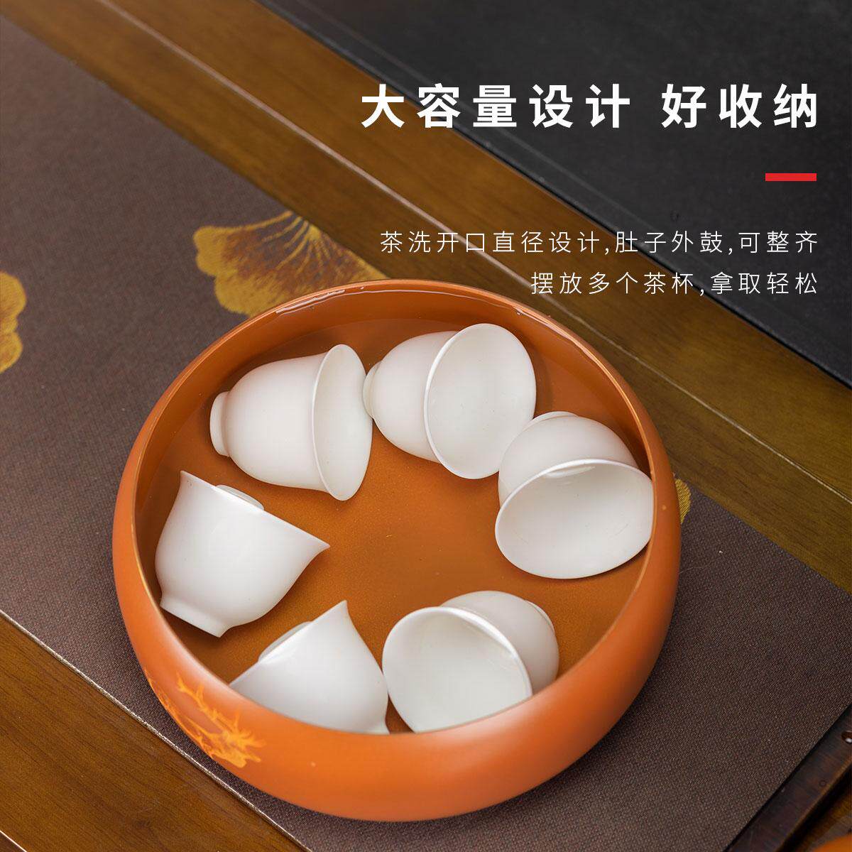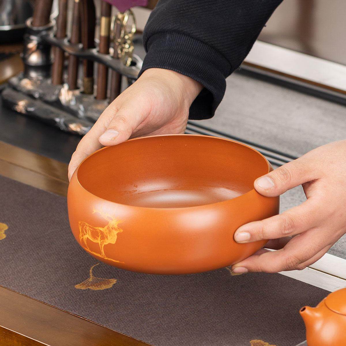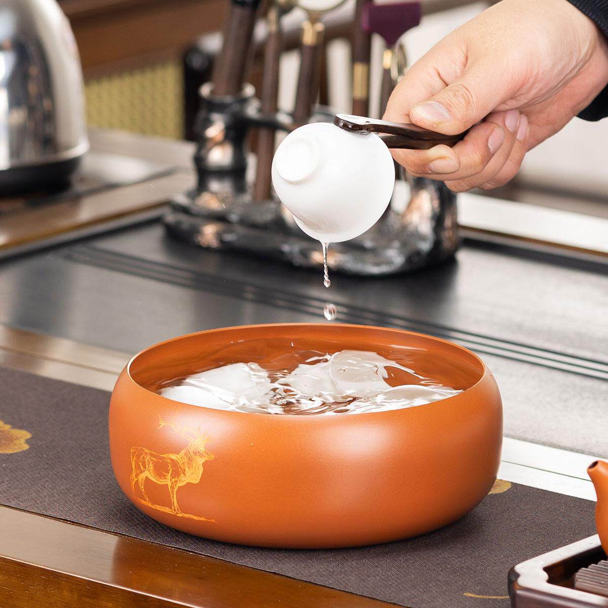 黄铜茶洗特大号家用洗杯碗日式禅意复古水盂茶渣缸茶道茶渣缸茶盂