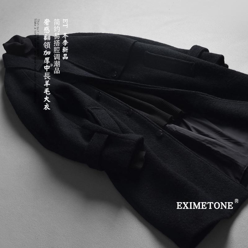 男士颗粒羊毛中长款大衣冬季加厚呢子风衣翻领宽松时尚羊毛呢外套