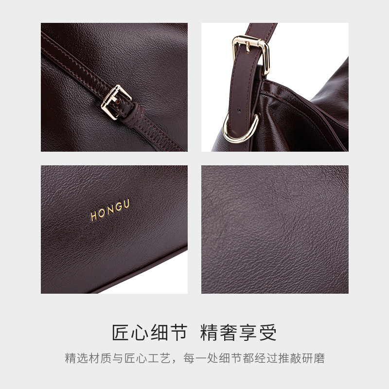 红谷女包高级感真皮腋下包大容量hobo包头层牛皮百搭单肩斜挎包潮