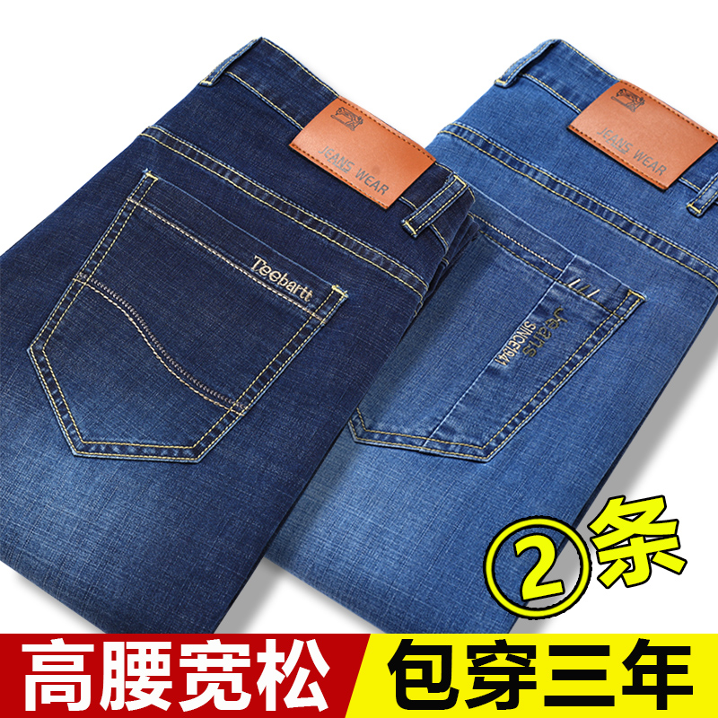 夏季薄款男士牛仔裤男直筒宽松休闲长裤男裤中年爸爸高腰弹力裤子