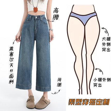 复古九分天丝牛仔裤女夏薄款胖MM大码高腰显瘦宽松直筒阔腿裤子