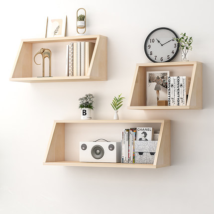 原木简约置物架创意壁挂式格子书架客厅卧室储物架免打孔书柜隔板
