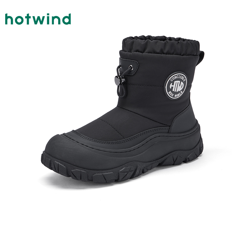 热风户外雪地靴女鞋2025年冬季新款女士时尚休闲靴银黑厚底短筒靴